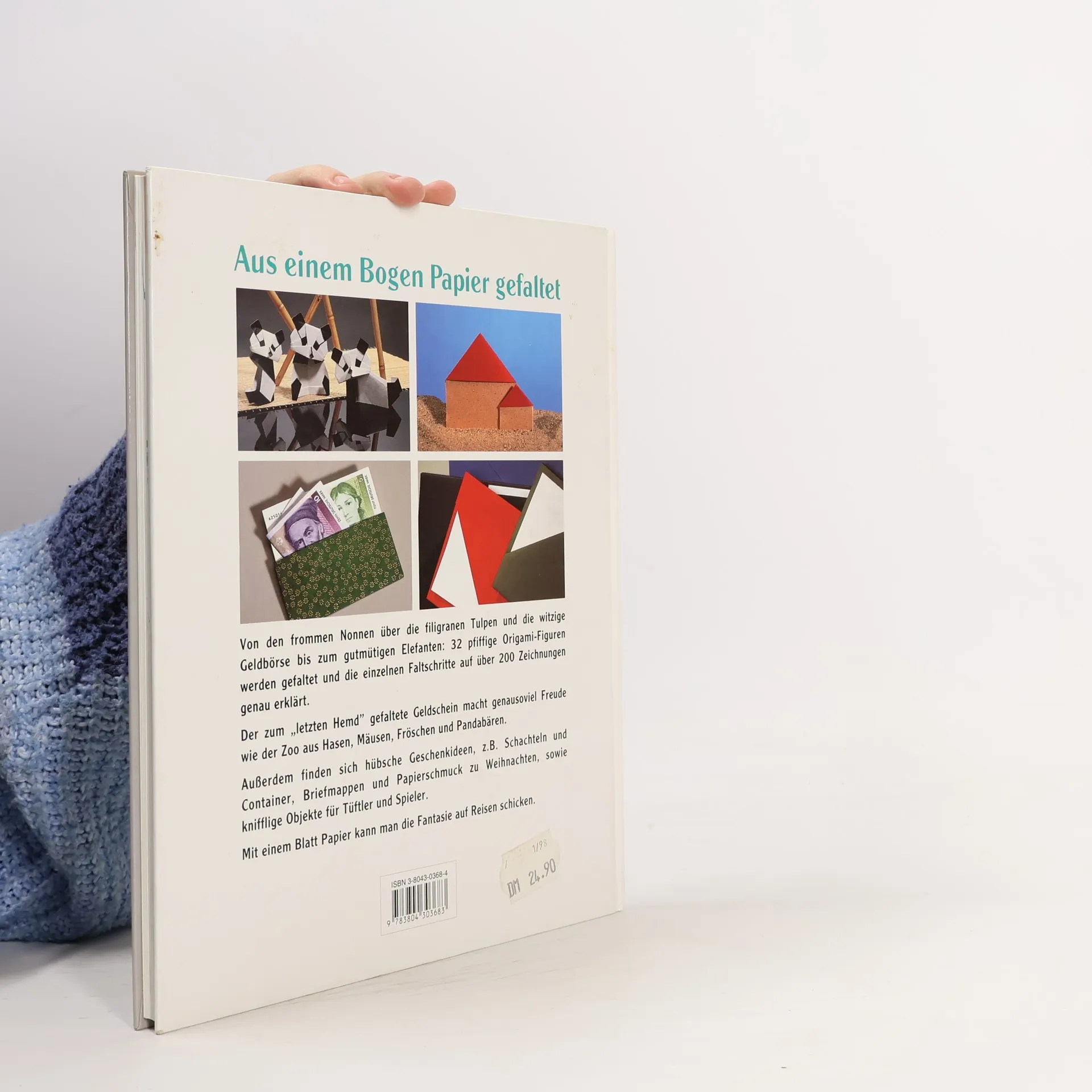32 pfiffige Origami-Figuren werden gefaltet und die einzelnen Faltschritte auf über 200 Zeichnungen genau erklärt. Der zum „letzten Hemd“ gefaltete Geldschein macht genausoviel Freude wie der Zoo aus Hasen, Mäusen, Fröschen und Pandabären. Außerdem finden sich hübsche Geschenkideen, z. B. Schachteln, Briefmappen und Papierschmuck zu Weihnachten, sowie knifflige Objekte für Tüftler und Spieler.