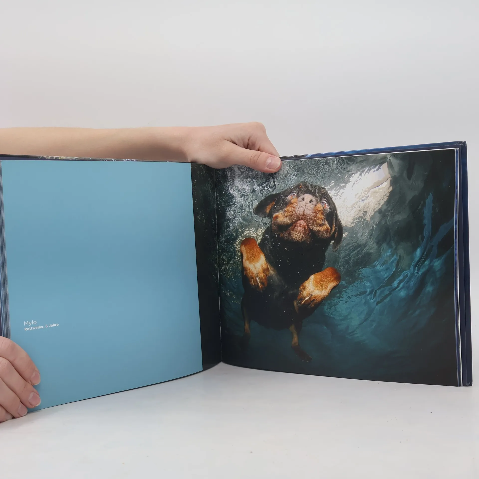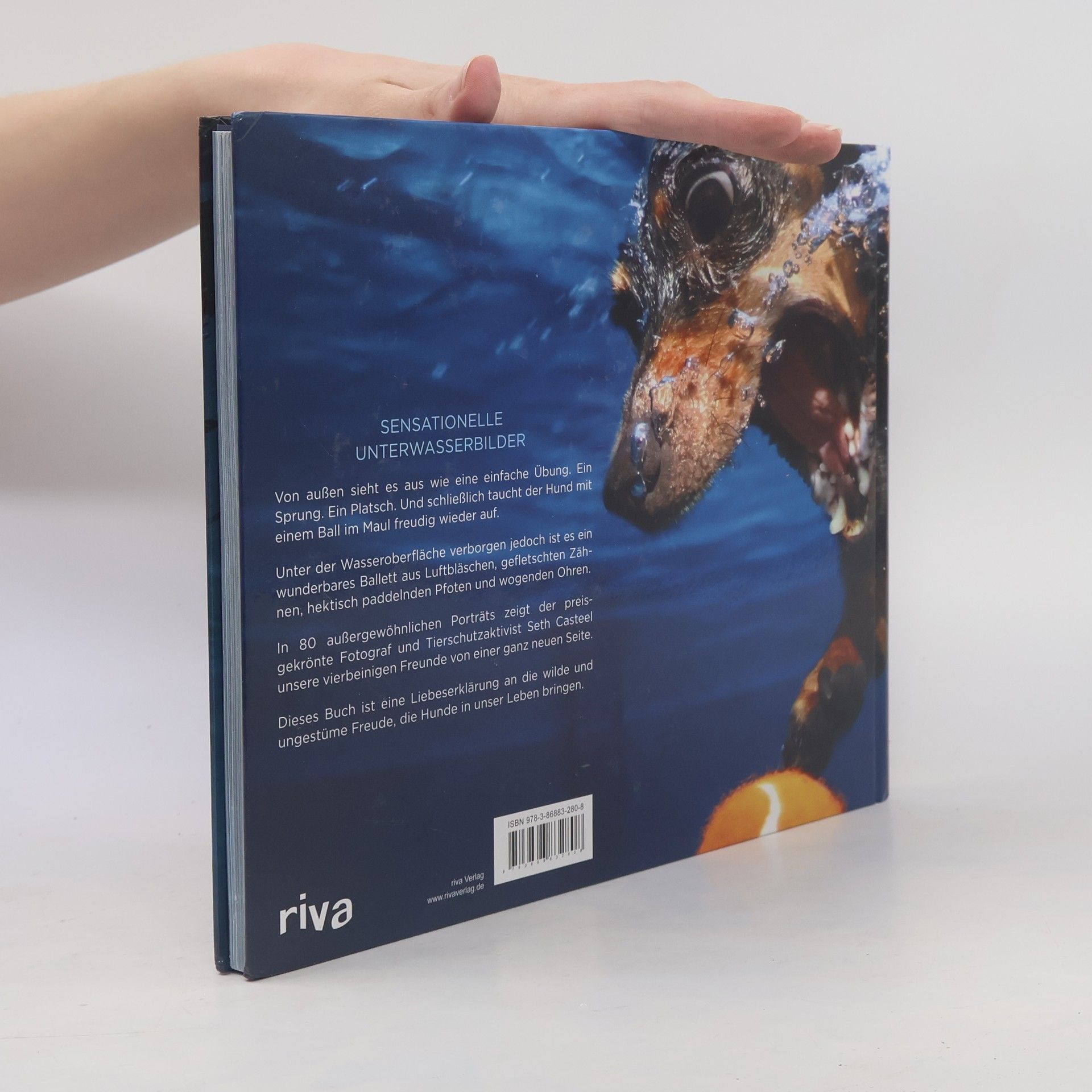 Fesselnde Bilder aus dem Unterwasserleben von Hunden. Der Bildband „Hunde unter Wasser“ zeigt Hunde, wie sie noch nie zuvor porträtiert wurden. Der preisgekrönte Fotograf Seth Casteel verfügt über eine besondere Technik, mit der er Vierbeiner vom Grunde eines Schwimmbades aus fotografieren kann, während diese ins Wasser eintauchen. Die Bilder, die dabei entstehen, bieten spektakuläre Impressionen, der Anblick der Hunde erinnert teilweise an Urzeittiere, Fische, tauchende Babys, …. Vom Labrador, über den Spaniel bis hin zum Border Collie hat Seth Casteel fast jede gängige Hunderasse mit dieser neuartigen Technik abgelichtet. Die 80 außergewöhnlichen, großformatigen Portraits zeigen eine noch nie gesehene Darstellung des ältesten Freundes des Menschen. Der Bildband ist das perfekte Geschenk für jeden Hundefreund und jeden, der sich für Fotografie begeistert.