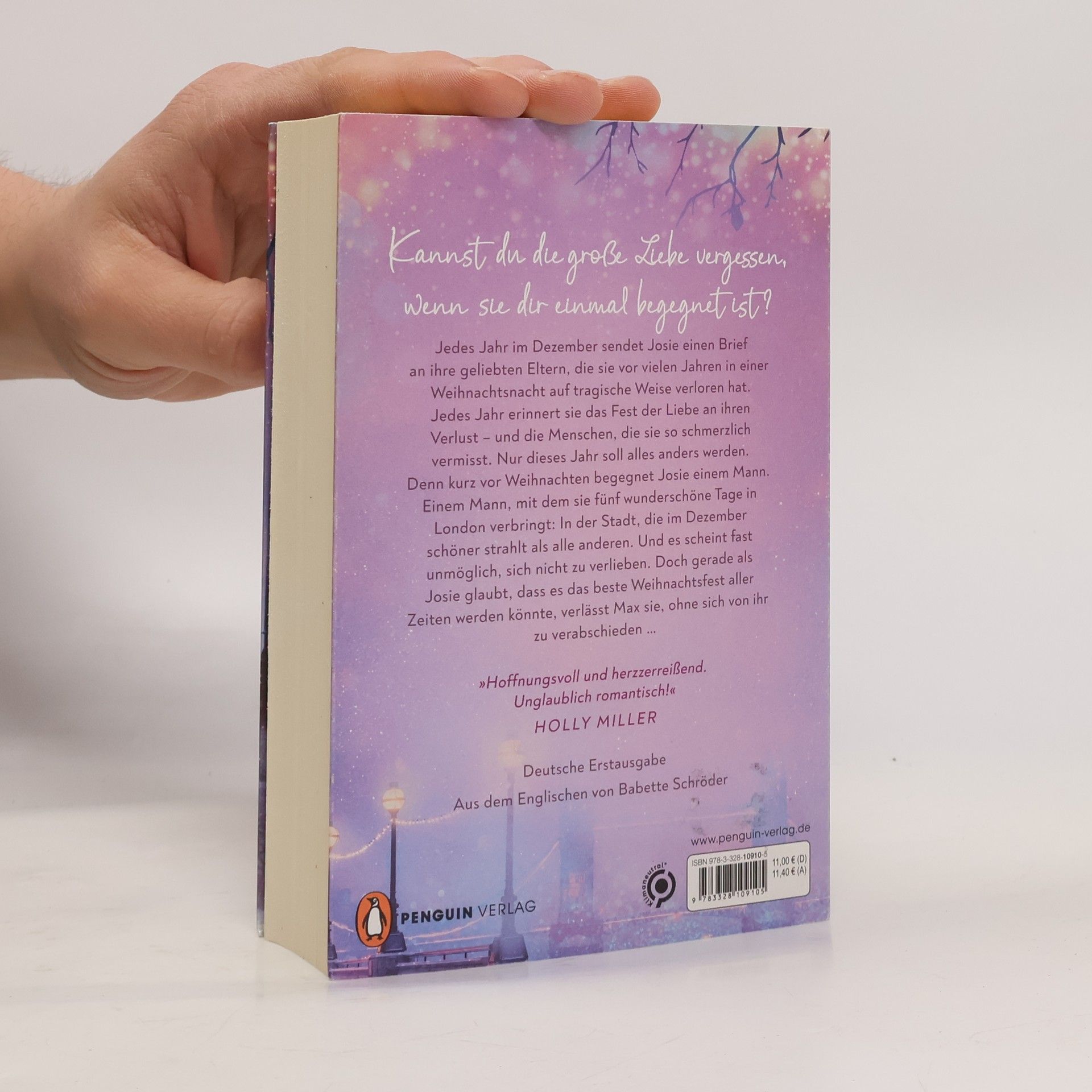 Kannst du die große Liebe vergessen, wenn sie dir einmal begegnet ist? Jedes Jahr im Dezember sendet Josie einen Brief an ihre geliebten Eltern, die sie vor vielen Jahren in einer Weihnachtsnacht auf tragische Weise verloren hat. Jedes Jahr erinnert sie das Fest der Liebe an ihren Verlust – und die Menschen, die sie so schmerzlich vermisst. Nur dieses Jahr soll alles anders werden. Denn kurz vor Weihnachten begegnet Josie einem Mann. Einem Mann, mit dem sie fünf wunderschöne Tage in London verbringt: In der Stadt, die im Dezember schöner strahlt als alle anderen. Und es scheint fast unmöglich, sich nicht zu verlieben. Doch gerade als Josie glaubt, dass es das beste Weihnachtsfest aller Zeiten werden könnte, verlässt Max sie, ohne sich von ihr zu verabschieden … Ein Roman, so anrührend und humorvoll wie Notting Hill und Vier Hochzeiten und ein Todesfall . Die ganz große Liebe und der ganz große Schmerz liegen oft nah beieinander. Ein hochemotionaler Liebesroman und Garant für eine Achterbahn der Gefühle. »Ein herzergreifendes, lebensbejahendes Buch, das sich wie eine Umarmung anfühlt.« Josie Silver