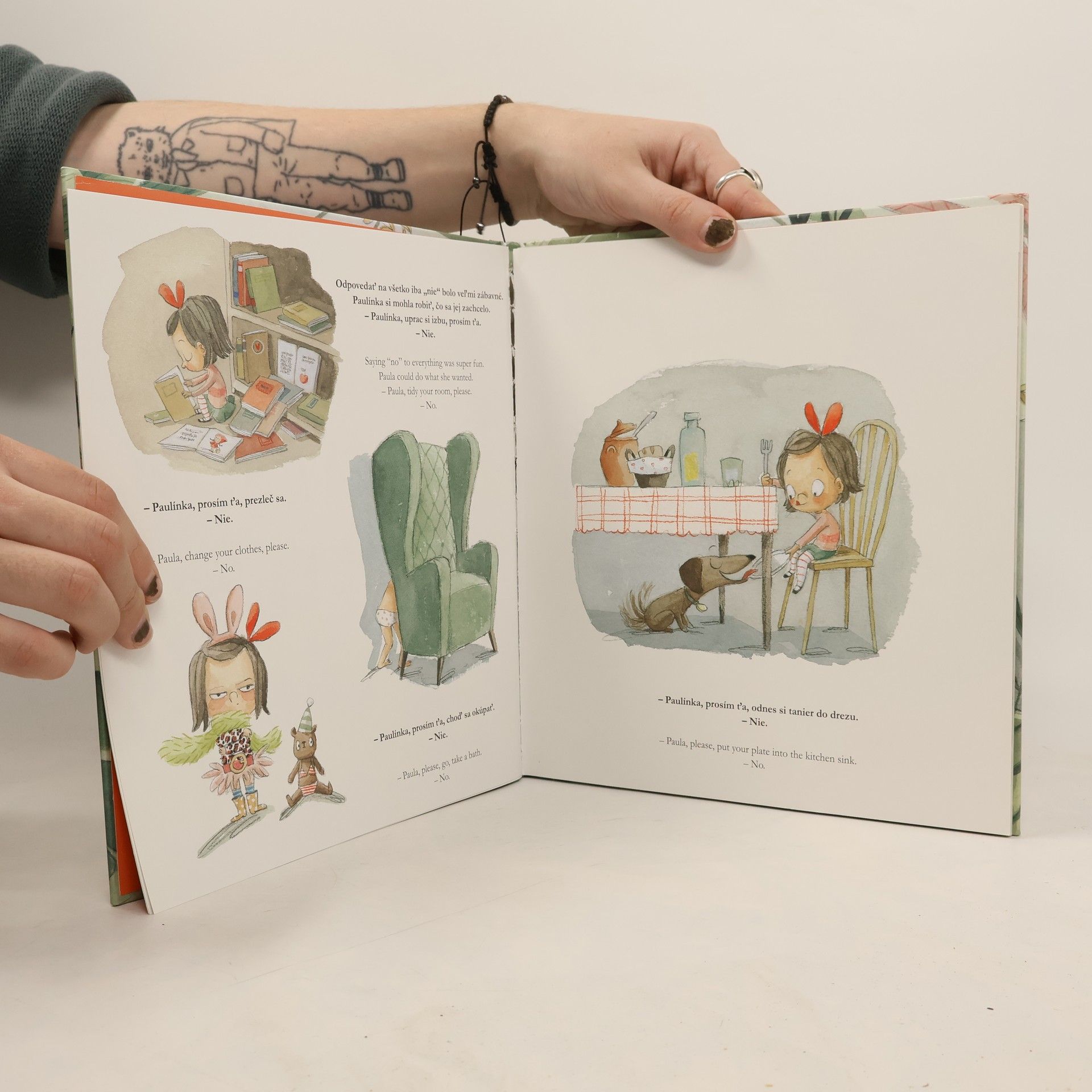 Dvojjazyčná kniha Toto nie je džungľa! / This is not a jungle!, ktorej autorkou je spisovateľka a psychologička Susanna Isern, nás veselým a poučným spôsobom sprevádza obdobím vzdoru. Hlavnou hrdinkou knihy je dievčatko menom Paulínka, ktorá sa jedného dňa naučí slovíčko NIE, a všetko je odrazu oveľa zábavnejšie. Jej mama sa snaží situáciu zvládať trpezlivo a pomáhať svojej dcérke prekonať toto náročné obdobie, no príde čas, keď si s ňou už nedokáže rady a nakoniec si povzdychne – O chvíľu to tu bude vyzerať ako v džungli – / – This place will soon look like a jungle – Keď sa na druhý deň Paulínka zobudí, zrazu je všetko inak. V jej izbe spí lev, vo vani sa kúpe hroch, na chodbe sa hádajú tukany, rodičovskú spálňu obsadili medvede a v kuchyni majú hostinu všetky možné divé zvery. Aj vonku vyzerá všetko ako v džungli: stromy, liany, hustý porast… Kniha je veľmi vtipná, pútavá a pôvabná.