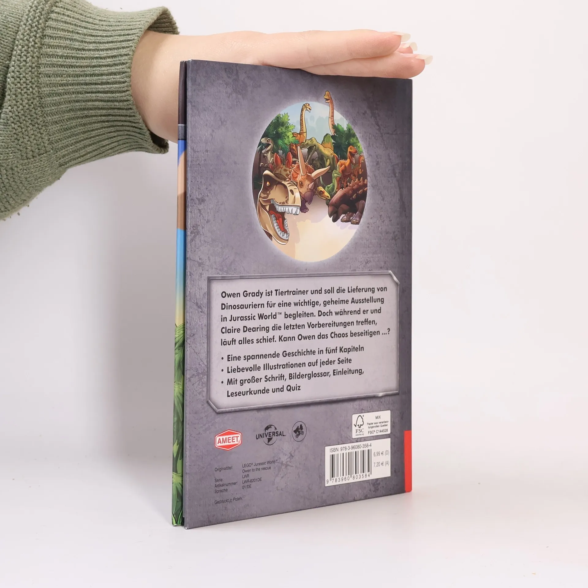 Es ist Owen Gradys erster Tag in Jurassic World. Er begleitet die Lieferung von Dinosauriern für eine wichtige, geheime Ausstellung im Park. Während Claire Dearing die letzten Vorbereitungen organisiert, läuft alles schief und Owen muss einen kleinen Jungen vor einem T. Rex retten!Dieses LEGO® Jurassic World™ Lesebuch eignet sich besonders gut für Leseanfänger: Große Schrift, kurze Sätze und liebevolle Illustrationen auf jeder Seite erleichtern kleinen Dino-Fans das Lesen. Ein Bilderglossar stellt die berühmten Helden und die bekanntesten Dinosaurier des Parks vor. Für ein positives Leseerlebnis sorgen eine Leseurkunde zum Ausfüllen und ein Quiz am Ende des Buches.