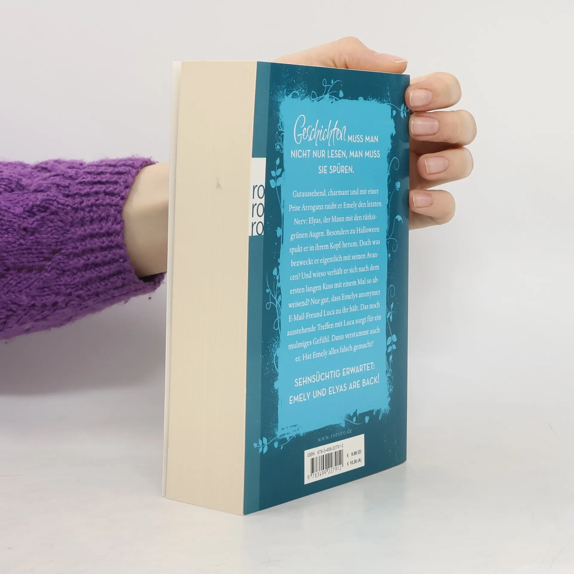 Gut aussehend, charmant und mit einer Prise Arroganz raubt er Emely den letzten Nerv: Elyas, der Mann mit den türkisgrünen Augen. Besonders zu Halloween spukt er in ihrem Kopf herum. Doch was bezweckt er eigentlich mit seinen Avancen? Und wieso verhält er sich nach dem ersten langen Kuss mit einem Mal so abweisend? Nur gut, dass Emelys anonymer E-Mail-Freund Luca zu ihr hält. Das noch ausstehende Treffen mit Luca sorgt für ein mulmiges Gefühl. Dann verstummt auch er. Hat Emely alles falsch gemacht?
