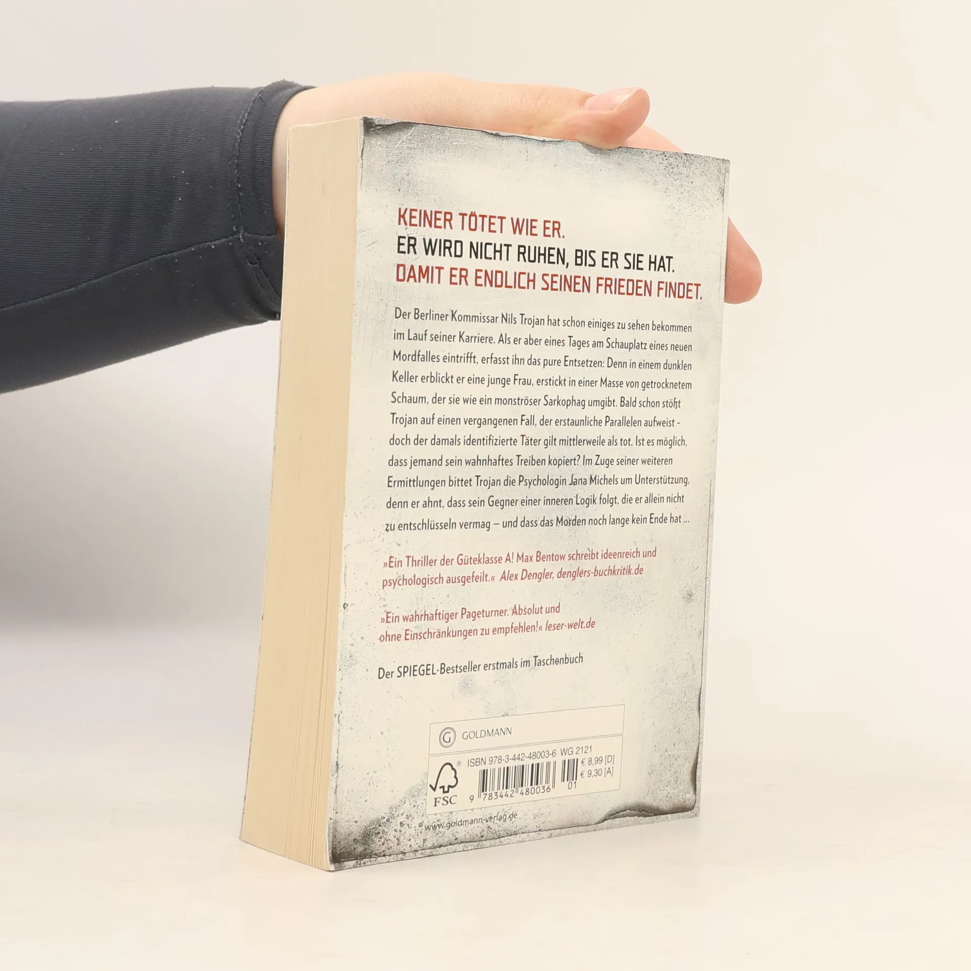 Keiner tötet wie er. Er wird nicht ruhen, bis er sie hat. Damit er endlich seinen Frieden findet Als der Berliner Kommissar Nils Trojan an den Schauplatz eines neuen Mordfalles gerufen wird, ist er zutiefst erschüttert von dem Anblick, der sich ihm bietet: Der Täter hatte eine junge Frau in den Keller gelockt und sie dort auf ungeahnte Weise ermordet – ihr Körper ist erstarrt in einem monströsen Sarkophag aus getrocknetem Schaum. Bei seiner Recherche stößt Trojan auf einen älteren Fall, der verblüffende Parallelen aufweist: Damals konnte die Puppenmacherin Josephin Maurer in letzter Sekunde aus einem Keller befreit werden, der Angreifer hatte bereits Spuren seiner makabren Handschrift auf ihrem Körper hinterlassen. Doch der als Täter identifizierte Karl Junker gilt inzwischen als tot – kann es sein, dass jemand ihn kopiert? Oder ist er doch noch am Leben, besessen davon, sein grausames Werk fortzusetzen?