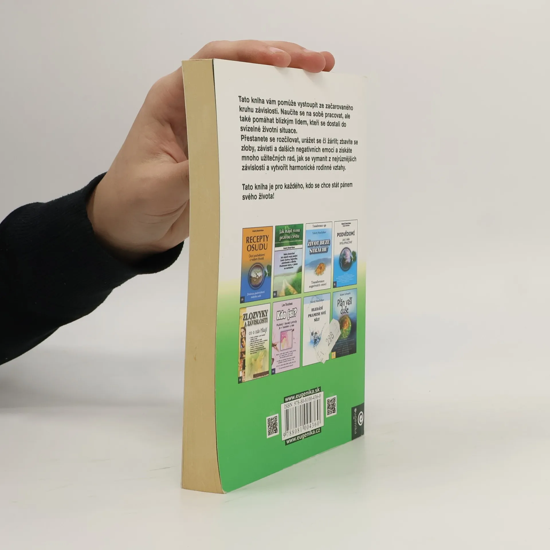 Tato kniha vám pomůže vystoupit ze začarovaného kruhu závislostí. Naučíte se na sobě pracovat, ale také pomáhat blízkým lidem, kteří se dostali do svízelné životní situace. Přestanete se rozčilovat, urážet se či žárlit; zbavíte se zloby, závisti a dalších negativních emocí. Získáte mnoho užitečných rad, jak se vymanit z nejrůznějších závislostí a vytvořit harmonické rodinné vztahy. Naučíte se zvládat tyto věci: zlost, strach, rozčilování se, urážení se, závist, alkohol, kouření, drogy.