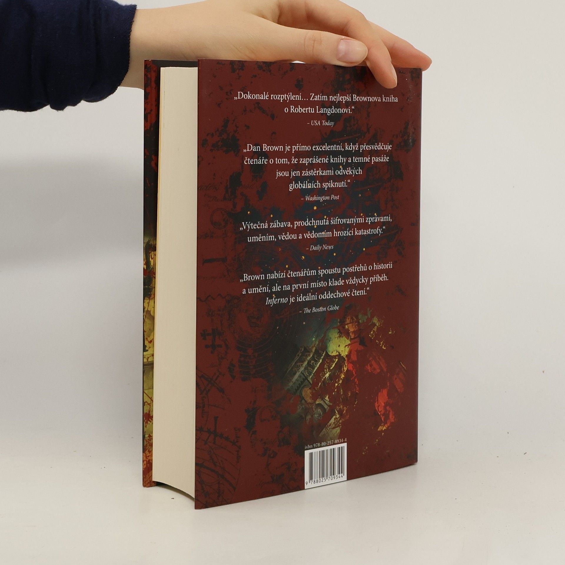 Dan Brown se vrací novým thrillerem Inferno, který je pokračováním světových bestsellerů Šifra mistra Leonarda, Andělé a démoni a Ztracený symbol. Ve svých románech Dan Brown mistrně spojuje nejzajímavější záhady historie umění s po věky fascinujícími symboly a šiframi. Robert Langdon se tentokráte ocitá v srdci Itálie, kde studuje mnoha záhadami a tajemstvími opředený rukopis – Danteho Peklo (Inferno). Musí se postavit tváří v tvář soupeři, který ho zavede do světa klasického umění, tajných chodeb a futuristických zbraní. Klíč k nezodpovězeným otázkám je skryt mezi řádky Danteho pekla a Langdon se opět vrhá do boje s časem, aby odvrátil zkázu, která světu hrozí.
