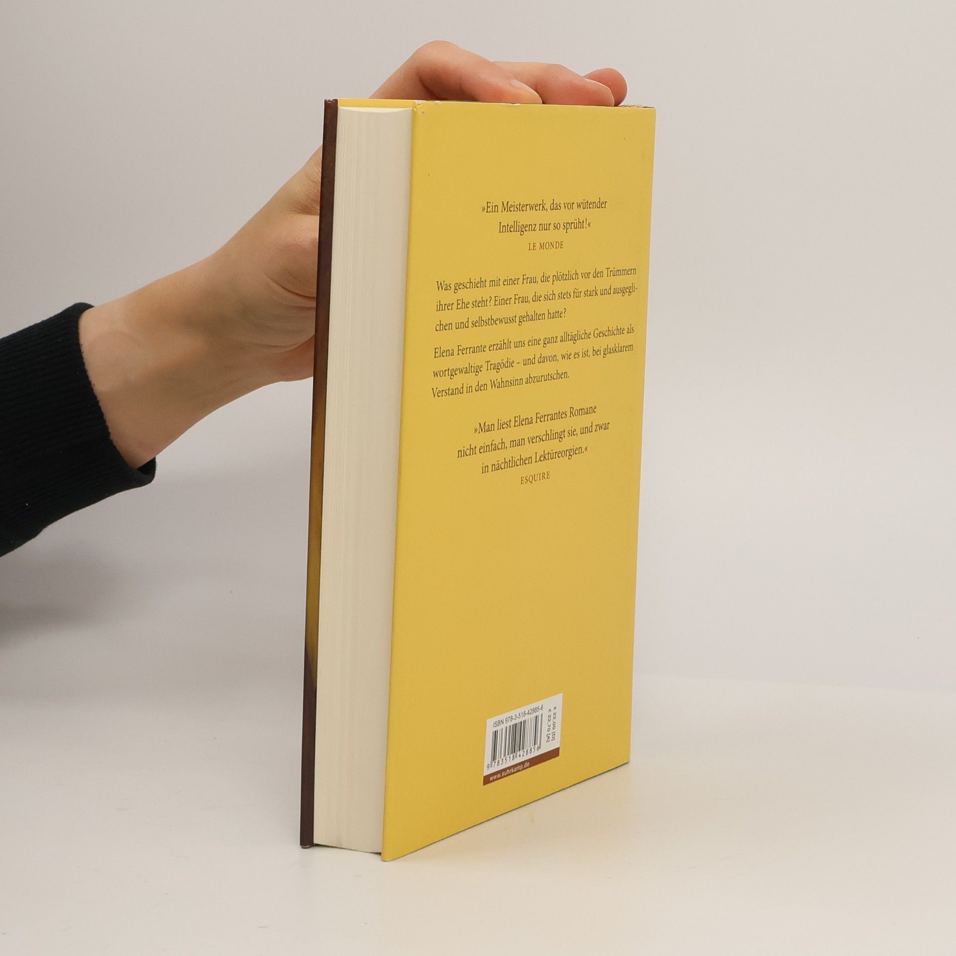 Olga ist achtunddreißig und verheiratet, sie hat zwei Kinder, eine schöne Wohnung in Turin und ein Leben, das solide auf familiären Gewissheiten und kleinen Ritualen ruht. Seit fünfzehn Jahren führt sie eine glückliche Ehe. Zumindest denkt sie das. Bis ein einziger Satz alles zerstört. Der Mann, mit dem sie alt zu werden hoffte, ihr geliebter Mario, will nichts mehr von ihr wissen, er hat eine Andere, eine zwanzig Jahre Jüngere. Alleingelassen mit den Kindern und dem Hund fällt Olga in einen dunklen Abgrund, dessen Existenz sie vorher nicht einmal hat erahnen können. Was geht in einer Frau vor, die plötzlich vor den Trümmern ihrer Ehe steht? Einer Frau, die sich immer für ausgeglichen, stark und selbstbewusst gehalten hat? Elena Ferrante erzählt uns eine ganz alltägliche Geschichte als wortgewaltige Tragödie – davon, wie es ist, bei glasklarem Verstand in den Wahnsinn abzurutschen.