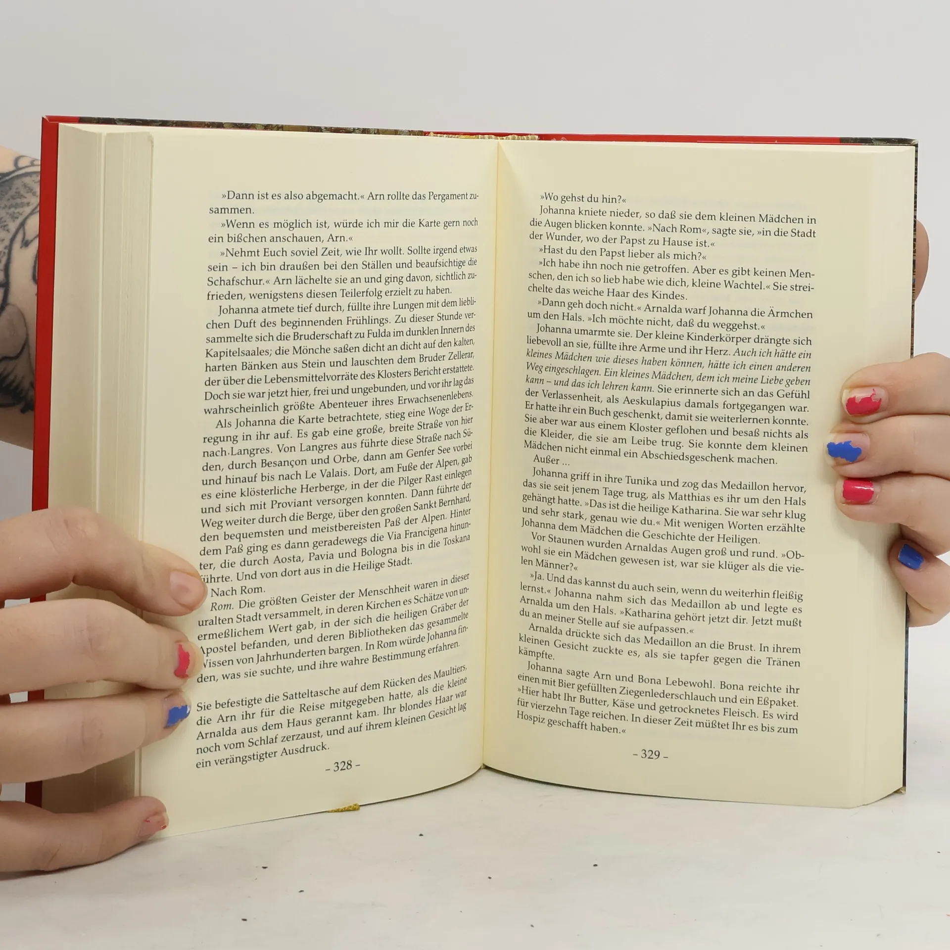 Im bitterkalten Winter des Jahres 814 bringt die heidnische Frau des Dorfpriesters ein Mädchen zur Welt: Johanna. Sie wächst in einer Welt düsteren Aberglaubens auf, gegen den ihr Vater grausam zu Felde zieht; er läßt sogar die Hebamme des Ortes als Hexe verfolgen. Ein Mensch erkennt bei Johanna besondere Gaben: Aeskulapius, der Pädagoge aus dem fernen Byzanz, weist sie als einziges Mädchen in die Lehren der Philosophie und Logik ein. Doch beinahe wird Johanna ihr Wissensdurst zum Verhängnis. Nur der Ritter Gerold, ihr Freund und späterer Liebhaber, vermag sie vor dem grausamen Magister Odo zu bewahren. Nach einem verheerenden Feldzug der Normannen weiß sie endgültig: Frauen wie sie überleben in dieser Welt nicht. So geht sie als Mönch verkleidet ins Kloster Fulda. Als Medicus betritt sie Jahre später Rom, die Stadt des Papstes - wo die Wechselfälle des Schicksals sie schließlich selbst auf den heiligen Stuhl bringen.