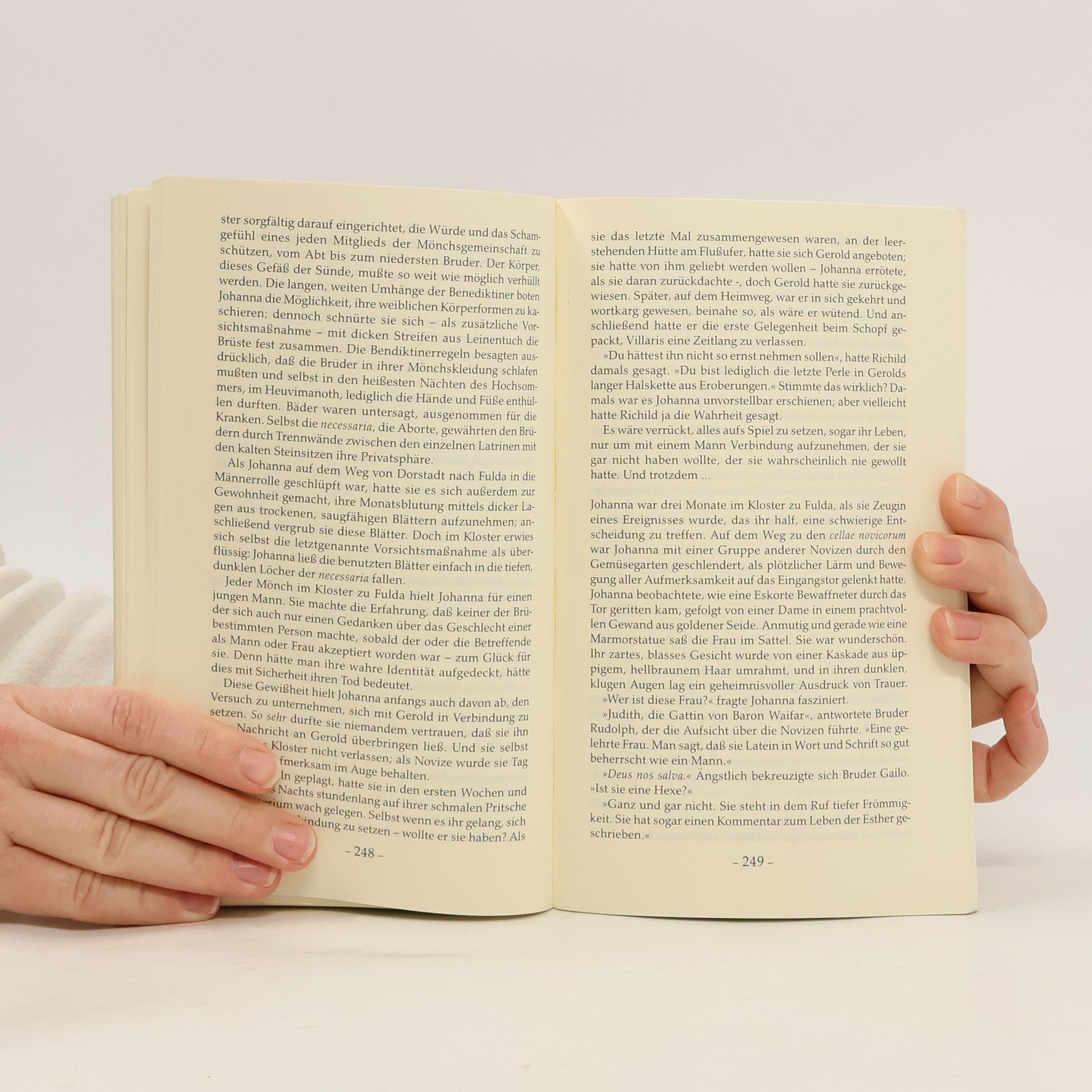 Im bitterkalten Winter des Jahres 814 bringt die heidnische Frau des Dorfpriesters ein Mädchen zur Welt: Johanna. Sie wächst in einer Welt düsteren Aberglaubens auf, gegen den ihr Vater grausam zu Felde zieht; er läßt sogar die Hebamme des Ortes als Hexe verfolgen. Ein Mensch erkennt bei Johanna besondere Gaben: Aeskulapius, der Pädagoge aus dem fernen Byzanz, weist sie als einziges Mädchen in die Lehren der Philosophie und Logik ein. Doch beinahe wird Johanna ihr Wissensdurst zum Verhängnis. Nur der Ritter Gerold, ihr Freund und späterer Liebhaber, vermag sie vor dem grausamen Magister Odo zu bewahren. Nach einem verheerenden Feldzug der Normannen weiß sie endgültig: Frauen wie sie überleben in dieser Welt nicht. So geht sie als Mönch verkleidet ins Kloster Fulda. Als Medicus betritt sie Jahre später Rom, die Stadt des Papstes - wo die Wechselfälle des Schicksals sie schließlich selbst auf den heiligen Stuhl bringen.