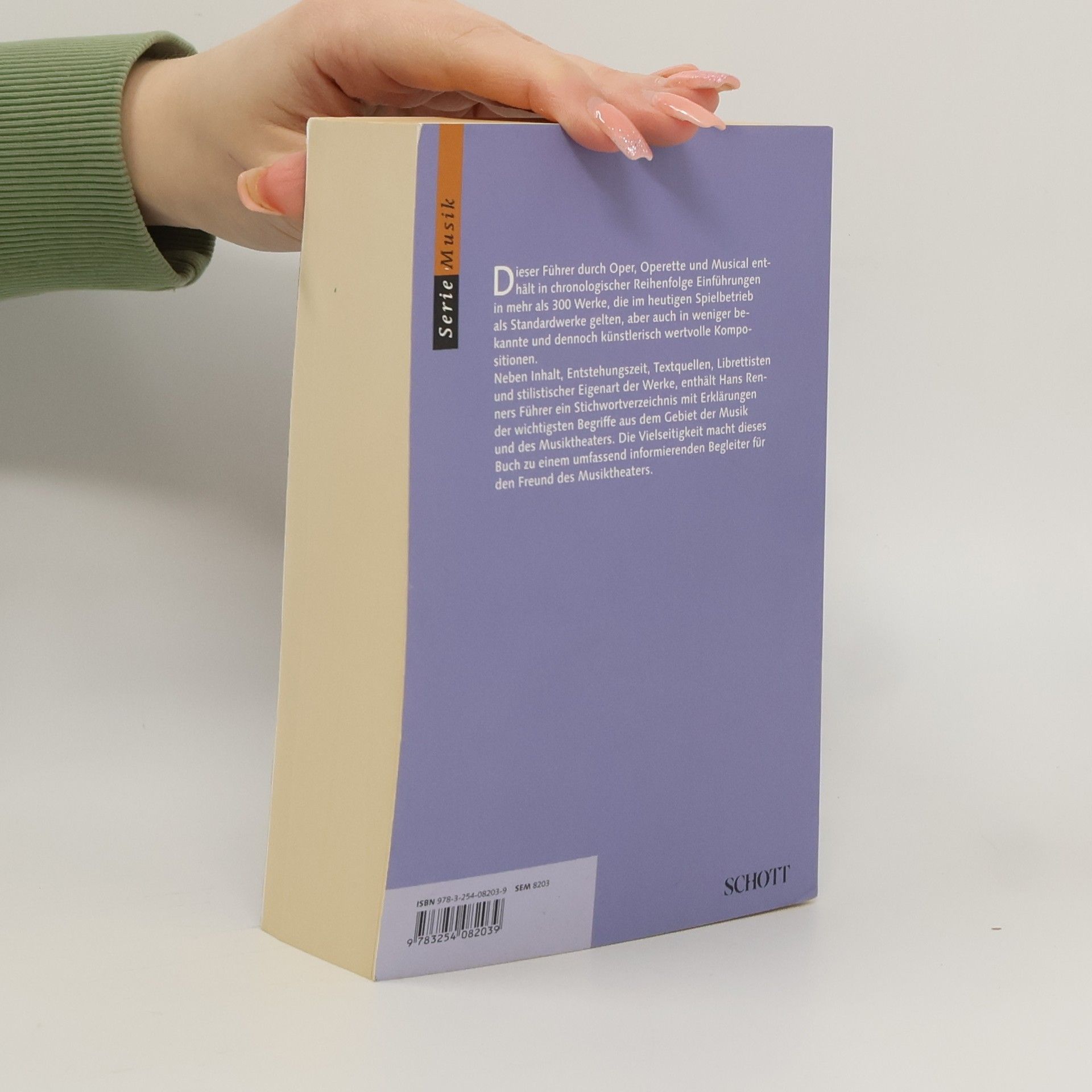 Dieser Führer durch Oper, Operette und Musical enthält in chronologischer Reihenfolge Einführungen in nahezu 300 Werke, die im heutigen Spielbetrieb als Standarwerke gelten, aber auch in weniger bekannte und dennoch künstlerisch wertvolle Kompositionen. Neben Inhalt, Entstehungszeit, Textquellen, Librettisten und stilistischer Eigenart der Werke enthält Hans Renners Führer ein Stichwortverzeichnis mit Erklärungen der wichtigsten Begriffe aus dem Gebiet der Musik und des Musiktheaters sowie eine Bibliographie mit Hinweisen auf weiterführende Literatur und machen dieses Buch zu einem umfassend informierenden Begleiter für den Freund des Musiktheaters. Renners Führer erscheint in einer vollständig überarbeiteten Neuauflage. Hierfür wurde eine Reihe von zeitgenössischen sowie „wieder entdeckten“ Opern in diesen Führer neu aufgenommen, der sonst die Werke des heutigen Standardrepertoires weitgehend enthält. Es finden sich Inhaltsangaben der einzelnen Opern, Anmerkungen über deren Entstehungszeit, Textquellen und Librettisten sowie die stilistische Eigenart der Musik. Es folgen die wichtigsten Operetten sowie ein erheblich erweiterter Musical-Teil und ein Stichwortverzeichnis mit Erklärungen der wichtigsten Begriffe aus dem Gebiet der Musik und des Musiktheaters.