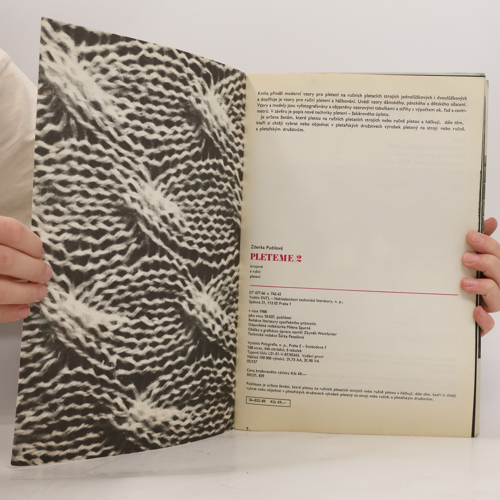 Kniha přináší moderní vzory pro pletení na ručních pletacích strojích jednolůžkových a dvoulůžkových a doplňuje je vzory pro ruční pletení a háčkování. Uvádí vzory dámského, pánského a dětského ošacení. Vzory a modely jsou rovněž vyfotografovány.