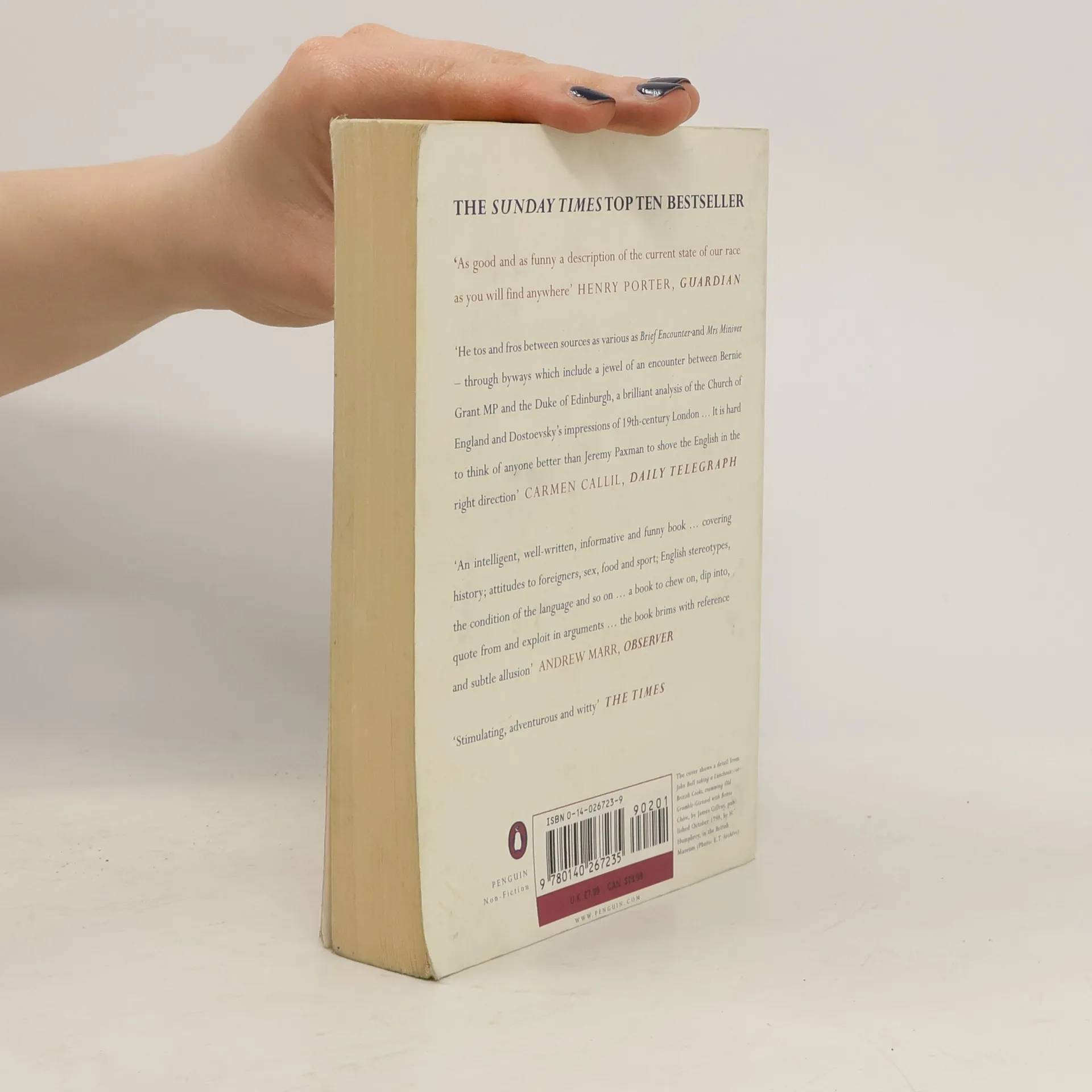 'As good and as funny a description of the current state of our race as you will find anywhere.' Henry Porter, Guardian 'He tos and fros between sources as various as Brief Encounter and Mrs Miniver - through byways which include a jewel of an encounter between Bernie Grant MP and the Duke of Edinburgh, a brilliant analysis of the Church of England and Dostoevsky's impressions of 19th-century London... It is hard to think of anyone better than Jeremy Paxman to shove the English in the right direction.' Carmen Callil, Daily Telegraph 'Stimulating, adventurous and witty.' The Times