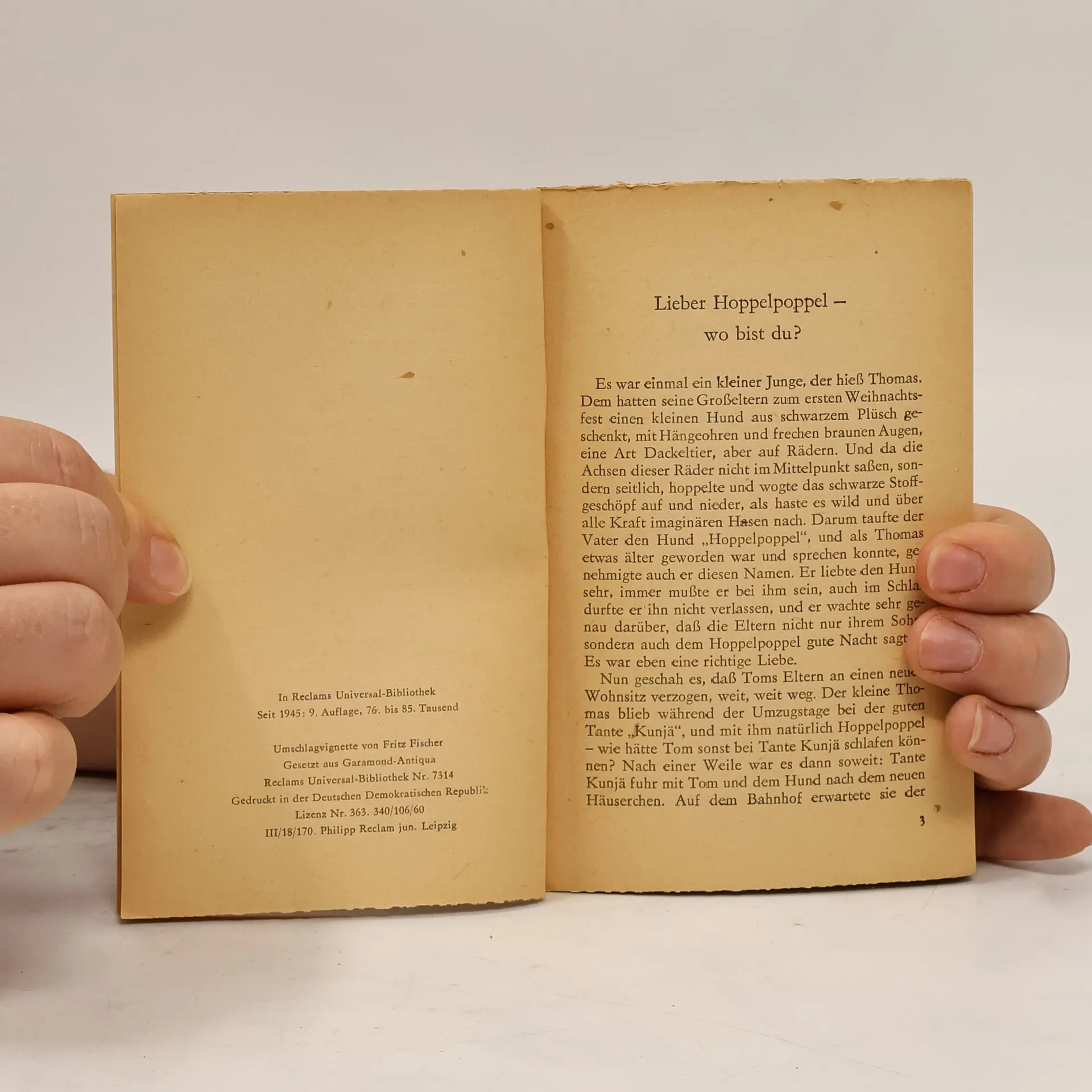 Es war einmal ein kleiner Junge, der hieß Thomas. Dem hatten seine Großeltern zum ersten Weihnachtsfest einen kleinen Hund aus schwarzem Plüsch geschenkt, mit Hängeohren und frechen braunen Augen, eine Art Dackeltier, aber auf Rädern … Das Stoffgeschöpf wurde HOPPE LPOPPE L getauft. Aber eines Tages geht das Kuscheltier verloren. Und von da an entspinnt sich eine wunderbare Geschichte um den verschwundenen Hoppelpoppel, der auf Umwegen zum Glück wieder auftaucht. Der Band enthält außerdem die Geschichten: Lieschens Sieg, Häusliches Zwischenspiel, Gigi und Lumpi, Pfingstfahrt in der Waschbalje, Die verlorenen Grünfinken und Lüttenweihnachten.