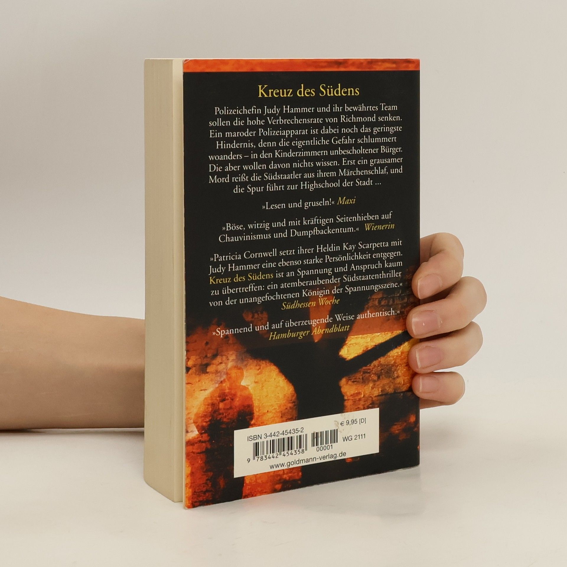 Judy Hammer und ihr bewährtes Team sollen die hohe Verbrechensrate von Richmond senken. Ein maroder Polizeiapparat ist dabei noch das geringste Hindernis, denn die eigentliche Gefahr schlummert woanders - in den Kinderzimmern unbescholtener Bürger. Die aber wollen davon nichts wissen. Erst ein grausamer Mord reißt die Südstaatler aus ihrem Märchenschlaf, und die Spur führt zur Highschool der Stadt. Der zweite Band von Cornwells Krimiserie um das Ermittlertrio Hammer, West und Brazil.