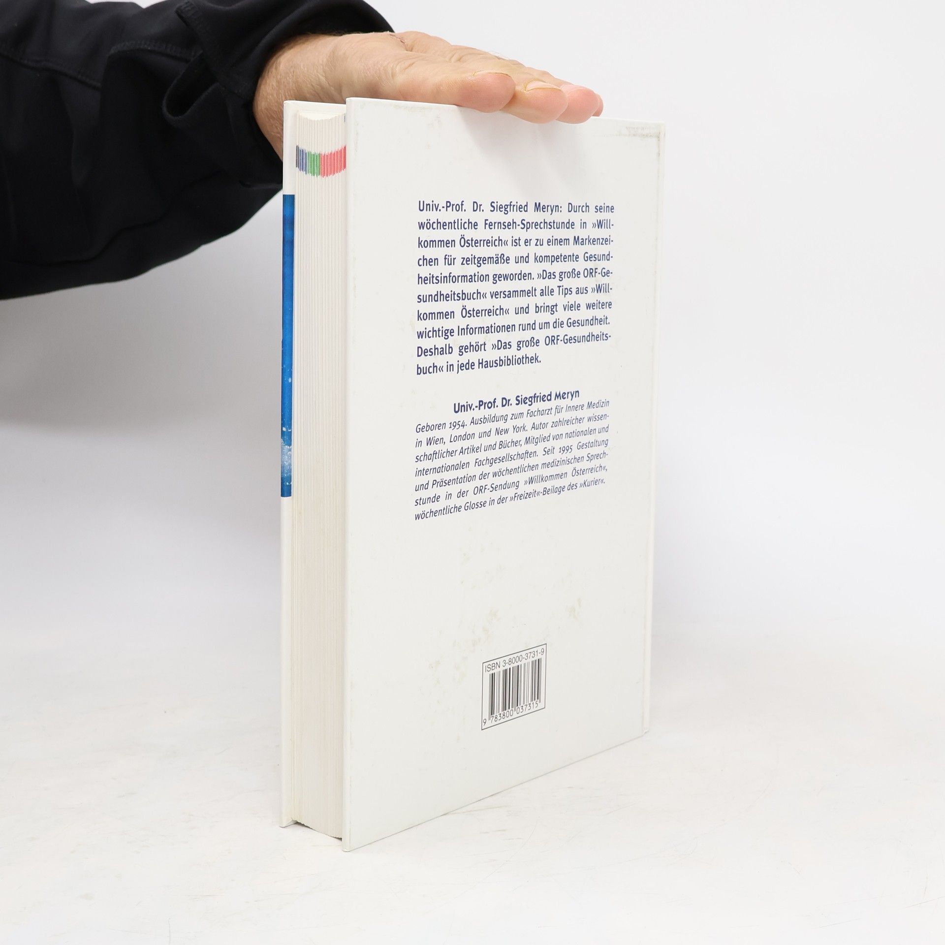 Dr. Siegfried Meryn: Durch seine wöchentliche Fernseh-Sprechstunde in Willkommen Österreich und seine Glossen im Kurier ist er zu einem Markenzeichen für zeitgemäße und kompetente Gesundheitsinformation geworden. „Das große ORF-Gesundheitsbuch“ von Univ.-Prof. Dr. Siegfried Meryn ist ein moderner, umfassender Gesundheitsratgeber. Nicht mehr und nicht weniger. Er enthält im Abschnitt „Gesund leben“ alle wichtigen Informationen über gesunden Lebensstil, gesunde Ernährung, gesunden Schlaf, Streßmanagement, Fitneß und Sport, Körper und Seele. „Gesund bleiben“ informiert über regelmäßige Gesundheitschecks und die richtige Vorbereitung auf Arzt, Spital und Operation, stellt Erste Hilfe, Impfungen und Medikamente der Schul- und Alternativmedizin vor und warnt vor „Wundermitteln“. „Gesund werden“ schließlich listet weit über 100 Beschwerden auf, beschreibt ihre Symptome und Ursachen und zeigt die verschiedensten Heilmöglichkeiten auf. Deshalb gehört „Das große ORF-Gesundheitsbuch“ in jede Hausbibliothek.
