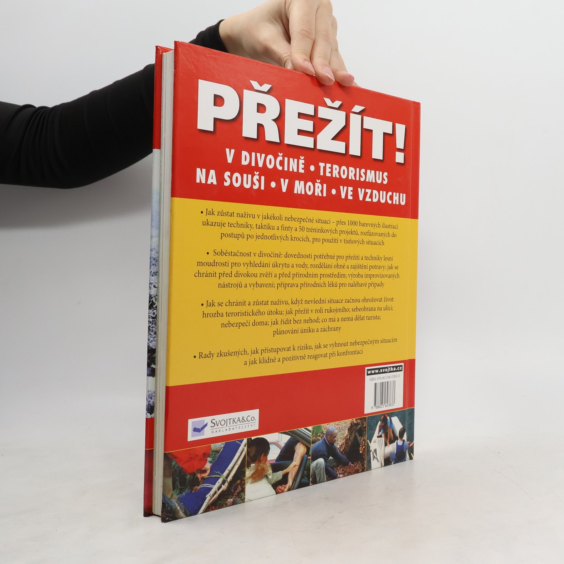 V divočině, na souši, na moři, ve vzduchu, mezi teroristy - jak zůstat naživu v jakékoli nebezpecné situaci. V této knize najdete přes 1000 barevných ilustrací, které ukazují techniky, taktiku a finty a 50 tréninkových projektů, rozfázovaných do postupů po jednotlivých krocích, pro použití v tísňových situacích. Naučí vás soběstačnosti v divočině: dovednosti potřebné pro přežití i techniky základní lesní moudrosti při vyhledání úkrytu či vody, rozdělání ohně a zajištění potravy, naučí jak se chránit před divokou zvěří i před prřírodními živly, jak vyrobit improvizované nástroje a vybavení, jak připravit přírodní léky pro naléhavé případy. Seznámí vás prostě s dovednostmi jak se chránit a zůstat naživu, když se z jakéhokoli důvodu ocitneme v ohrožení života. Ať při hrozbě teroristického útoku, nebo v roli rukojmího, při sebeobraně na ulici, či při nebezpečí doma. Kniha obsahuje i rady odborníků jak vyhodnocovat riziko, jak se nebezpečným situacím vyhnout i jak adekvátně reagovat při konfrontaci. Prostě jak přežít!