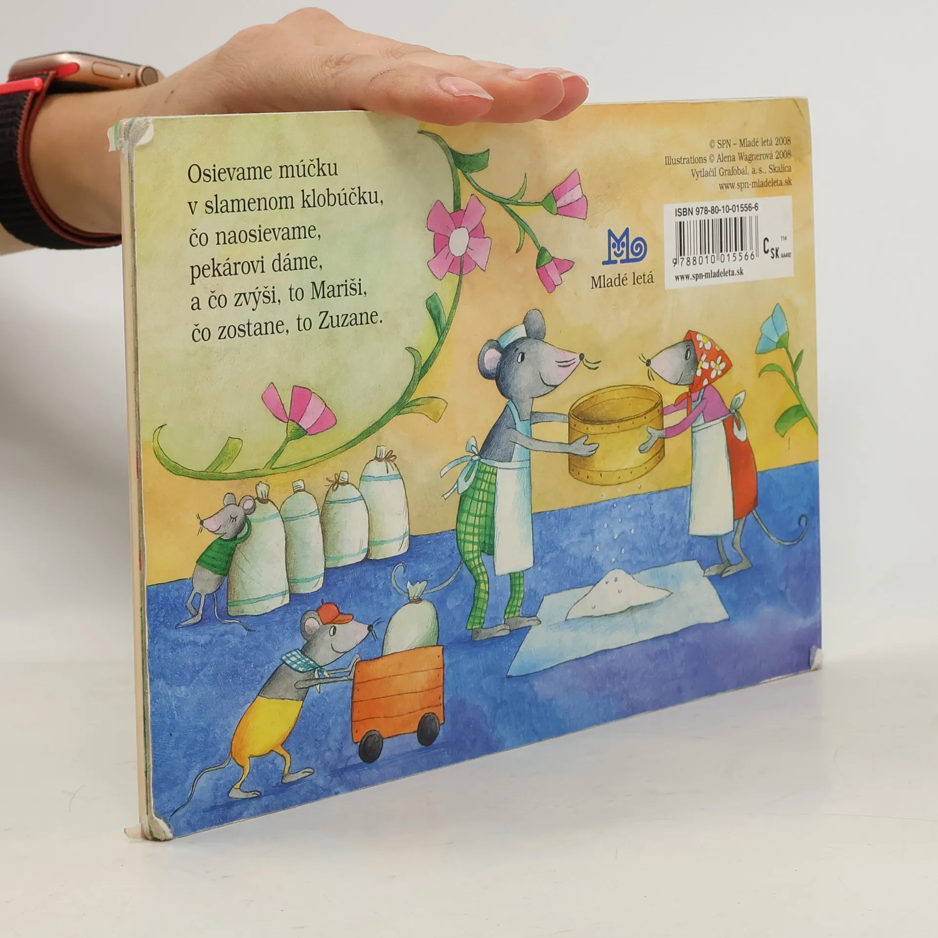 Ďalšie klasické leporelo zo série Žabiatko, tentoraz s ľudovými riekankami pre najmenších - Varila myšička kašičku, Naša mačka strakatá, Ide pavúk po stene, Osievame múčku... Riekanky sú ilustrované veselými obrázkami Aleny Wagnerovej. Skladačkové leporelo poslúži deťom aj ako hračka.