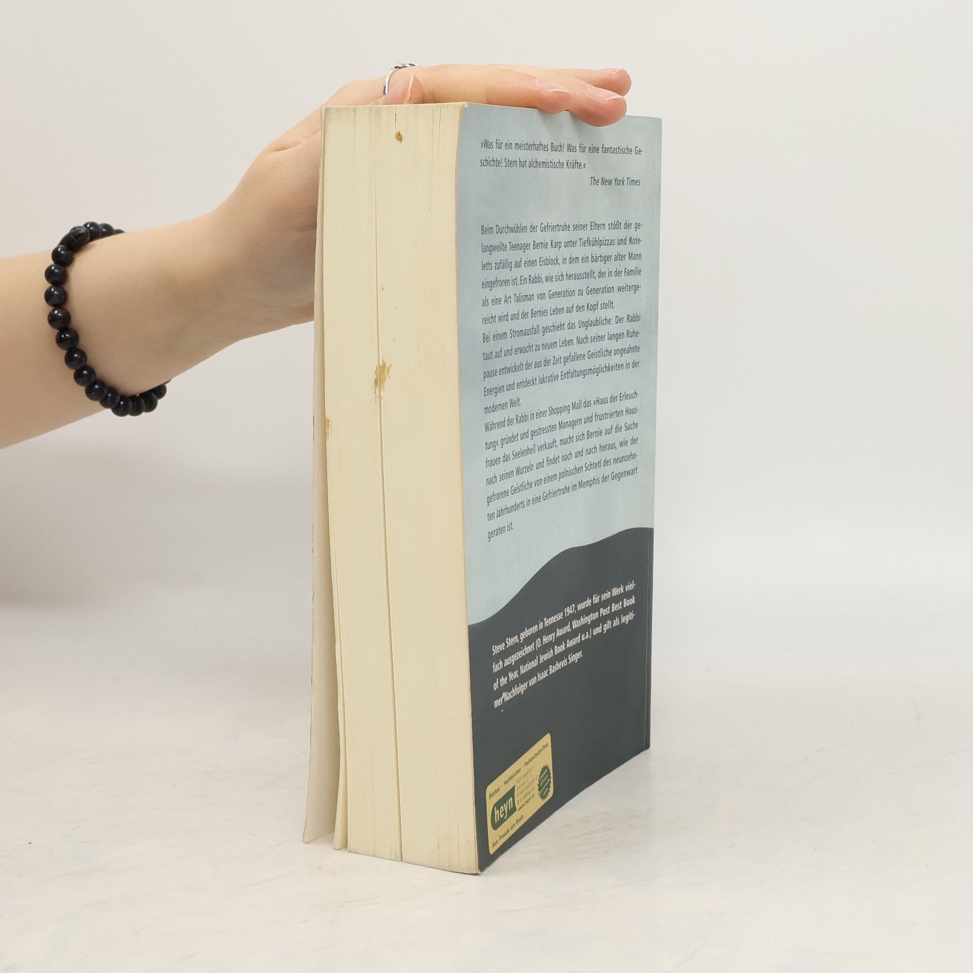 Eine scharfsinnige Gesellschaftssatire, eine skurrile Zeitreise und ein spannender Familienroman Beim Durchwühlen der Gefriertruhe stößt der gelangweilte Teenager Bernie Karp zwischen Tiefkühlpizzas und Koteletts zufällig auf einen Eisblock, in dem ein bärtiger alter Mann eingefroren ist. Ein Rabbi, wie seine ebenso gelangweilten Eltern ihm erklären, der innerhalb der Familie als eine Art Talisman über Generationen weitergereicht wurde. Bei einem Stromausfall geschieht das Unglaubliche: Der Rabbi taut auf und erwacht zu neuem Leben. Der aus der Zeit gefallene heilige Mann entwickelt ungeahnte Energien und entdeckt lukrative Entfaltungsmöglichkeiten in der modernen Welt. Während der Rabbi in einem Einkaufszentrum das „Haus der Erleuchtung“ gründet und gestressten Managern und frustrierten Hausfrauen das Seelenheil verkauft, glaubt Bernie, endlich einen Sinn in seinem Leben gefunden zu haben. Er findet nach und nach heraus, wie der gefrorene Geistliche von einem polnischen Schtetl des neunzehnten Jahrhunderts in eine Gefriertruhe im Memphis der Gegenwart geraten ist, und will das Familienerbe bewahren. Doch der Rabbi macht nichts als Ärger. Der vielfach preisgekrönte Autor gilt als legitimer Nachfolger von Isaac Bashevis Singer.