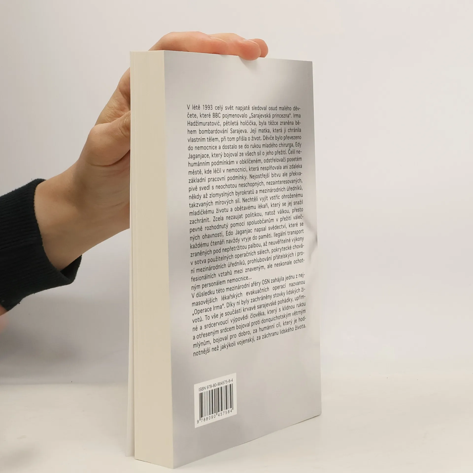 V létě 1993 celý svět napjatě sledoval osud malého děvčete, které BBC pojmenovalo „Sarajevská princezna". Pětiletá Irma Hadžimuratović byla těžce zraněna během bombardování Sarajeva. Děvče bylo převezeno do nemocnice a dostalo se do rukou mladého chirurga, Edy Jaganjace, který bojoval ze všech sil o jeho přežití. Nejostřejší bitvu ale svedl s neochotou nezainteresovaných, někdy až zlomyslných byrokratů a mezinárodních úředníků, takzvaných mírových sil. Edo Jaganjac napsal svědectví, které se každému čtenáři navždy vryje do paměti. Ilegální transport zraněných pod nepřetržitou palbou, až neuvěřitelné výkony v sotva použitelných operačních sálech, pokrytecké chování mezinárodních úředníků, prohlubování přátelských i profesionálních vztahů mezi znaveným, ale neskonale ochotným personálem nemocnice... To vše je součástí krvavé sarajevské pohádky, upřímné a srdcervoucí výpovědi člověka, který s klidnou rukou a otřeseným srdcem bojoval proti donquichotským větrným mlýnům, bojoval pro dobro, za humánní cíl, který je hodnotnější než jakýkoli vojenský, za záchranu lidského života.. Kniha roku 2015 podle hodnocení iDnes