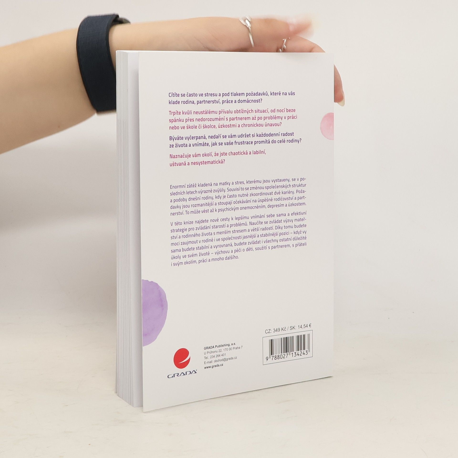 Enormní zátěž kladená na matky a stres, kterému jsou vystaveny, se v posledních letech výrazně zvýšily. Souvisí to se změnou společenských struktur a podoby dnešní rodiny, kdy je často nutné zkoordinovat dvě kariéry. Požadavky jsou rozmanitější a stoupají očekávání na úspěšné rodičovství a partnerství. To může vést až k psychickým onemocněním, depresím a úzkostem. V této knize najdete nové cesty k lepšímu vnímání sebe sama a efektivní strategie pro zvládání starostí a problémů. Naučíte se zvládat výzvy mateřství a rodinného života s menším stresem a větší radostí. Díky tomu budete moci zaujmout v rodině i ve společnosti jasnější a stabilnější pozici – když vy sama budete stabilní a vyrovnaná, budete zvládat i všechny ostatní důležité úkoly ve svém životě – výchovu a péči o děti, soužití s partnerem, s přáteli i svým okolím, práci a mnoho dalšího. Cítíte se často ve stresu a pod tlakem požadavků, které na vás klade rodina, partnerství, práce a domácnost? Trpíte kvůli neustálému přívalu obtížných situací, od nocí beze spánku přes nedorozumění s partnerem až po problémy v práci nebo ve škole či školce, úzkostmi a chronickou únavou? Býváte vyčerpaná, nedaří se vám udržet si každodenní radost ze života a vnímáte, jak se vaše frustrace promítá do celé rodiny? Naznačuje vám okolí, že jste chaotická a labilní, uštvaná a nesystematická?