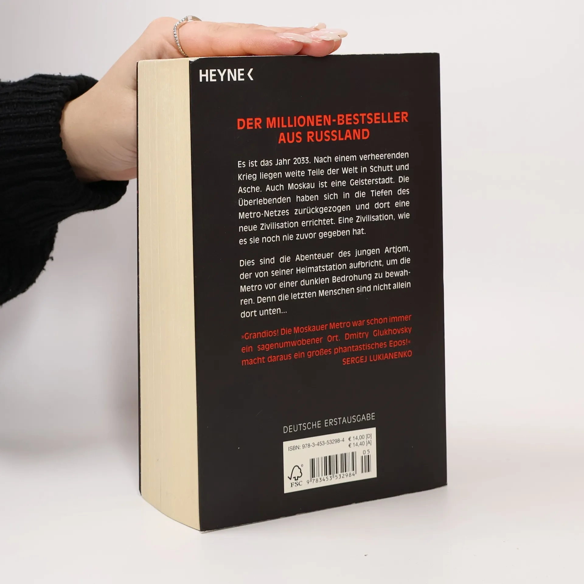 Moskau liegt in Schutt und Asche Es ist das Jahr 2033. Nach einem verheerenden Krieg liegen weite Teile der Welt in Schutt und Asche. Moskau ist eine Geisterstadt, bevölkert von Mutanten und Ungeheuern. Die wenigen verbliebenen Menschen haben sich in das weit verzweigte U-Bahn-Netz der Hauptstadt zurückgezogen und dort die skurrilsten Gesellschaftsformen entwickelt. Sie leben unter ständiger Bedrohung der monströsen Wesen, die versuchen, von oben in die Metro einzudringen ... Dies ist die Geschichte des jungen Artjom, der sich auf eine abenteuerliche Reise durch die U-Bahn-Tunnel macht, auf der Suche nach einem geheimnisvollen Objekt, das die Menschheit vor der endgültigen Vernichtung bewahren soll.