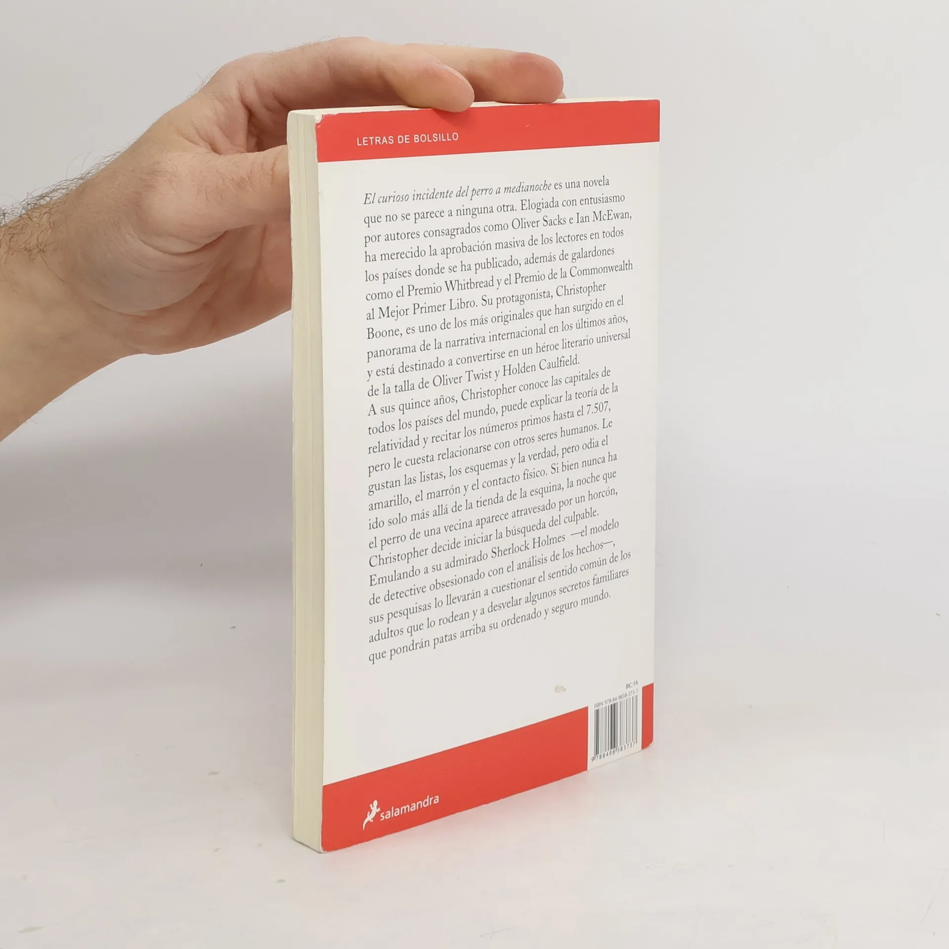 El curioso incidente del perro a medianoche es una novela que no se parece a ninguna otra. Elogiada con entusiasmo por autores consagrados como Oliver Sacks e Ian McEwan, ha merecido la aprobación masiva de los lectores en todos los países donde se ha publicado, además de galardones como el Premio Whitbread y el Premio de la Commonwealth al Mejor Primer Libro. Su protagonista, Christopher Boone, es uno de los más originales que han surgido en el panorama de la narrativa internacional en los últimos años, y está destinado a convertirse en un héroe literario universal de la talla de Oliver Twist y Holden Caulfield. A sus quince años, Christopher conoce las capitales de todos los países del mundo, puede explicar la teoría de la relatividad y recitar los números primos hasta el 7.507, pero le cuesta relacionarse con otros seres humanos. Le gustan las listas, los esquemas y la verdad, pero odia el amarillo, el marrón y el contacto físico. Si bien nunca ha ido solo más allá de la tienda de la esquina, la noche que el perro de una vecina aparece atravesado por un horcón, Christopher decide iniciar la búsqueda del culpable. Emulando a su admirado Sherlock Holmes el modelo de detective obsesionado con el análisis de los hechos , sus pesquisas lo llevarán a cuestionar el sentido común de los adultos que lo rodean y a desvelar algunos secretos familiares que pondrán patas arriba su ordenado y seguro mundo.