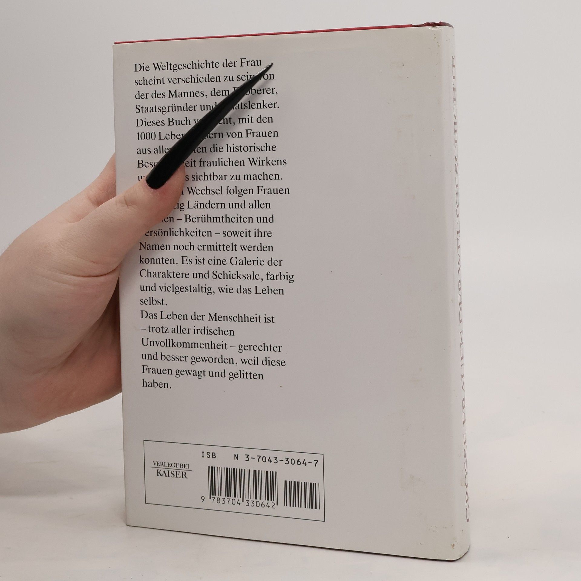 Die Weltgeschichte der Frau scheint verschieden zu sein von der des Mannes, dem Eroberer, Staatsgründer und Staatslenker. Dieses Buch versucht, mit den tausend Lebensbildern von Frauen aus allen Zeiten die historische Besonderheit fraulichen Wirkens und Lebens sichtbar zu machen. In buntem Wechsel folgen Frauen aus vierzig Ländern und allen Berufen - Berümtheiten und Persönlichkeiten - soweit ihre Namen noch ermittelt werden konnten. Es ist eine Galerie der Charaktere und Schicksale, farbig und vielgestaltig, wie das Leben selbst.§Das Leben der Menschheit ist - trotz aller irdischen Unvollkommenheit - gerechter und besser geworden, weil diese Frauen gewagt und gelitten haben.§
