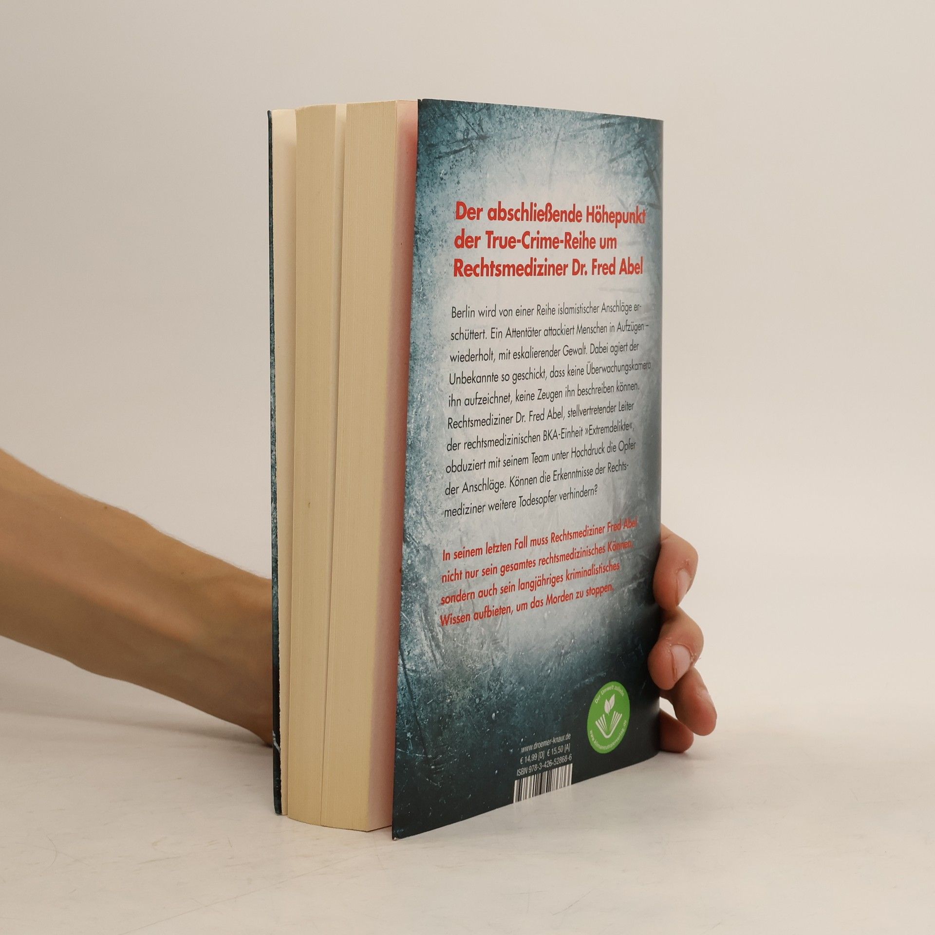 In der spannenden Fortsetzung von Michael Tsokos' True-Crime-Reihe wird Berlin von einer Serie islamistischer Anschläge erschüttert. Ein Attentäter greift gezielt Menschen in Aufzügen an, wobei seine Taten zunehmend brutaler werden. Geschickt entzieht sich der Unbekannte der Überwachung, sodass keine Kamera ihn erfasst und keine Zeugen ihn beschreiben können. Rechtsmediziner Fred Abel, stellvertretender Leiter der BKA-Einheit für Extremdelikte, steht unter immensem Druck, die Opfer der Anschläge zu obduzieren. Er und sein Team hoffen, aus den Verletzungen Rückschlüsse auf den Täter ziehen zu können. Gleichzeitig befindet sich die frühere Lebensgefährtin seines besten Freundes Lars Moewig in akuter Gefahr. Marie, die Zeugin eines Mordes wurde, entkommt nur knapp einem Mordanschlag, trotz Polizeischutz in einem Safe House. Abel vermutet, dass ein Maulwurf in den eigenen Reihen agiert und er sowie Moewig immer einen Schritt hinter dem Täter zurückbleiben. In seinem letzten Fall muss Fred Abel all sein rechtsmedizinisches Können und kriminalistisches Wissen mobilisieren, um die Täter zu identifizieren und die Mordserie zu beenden.