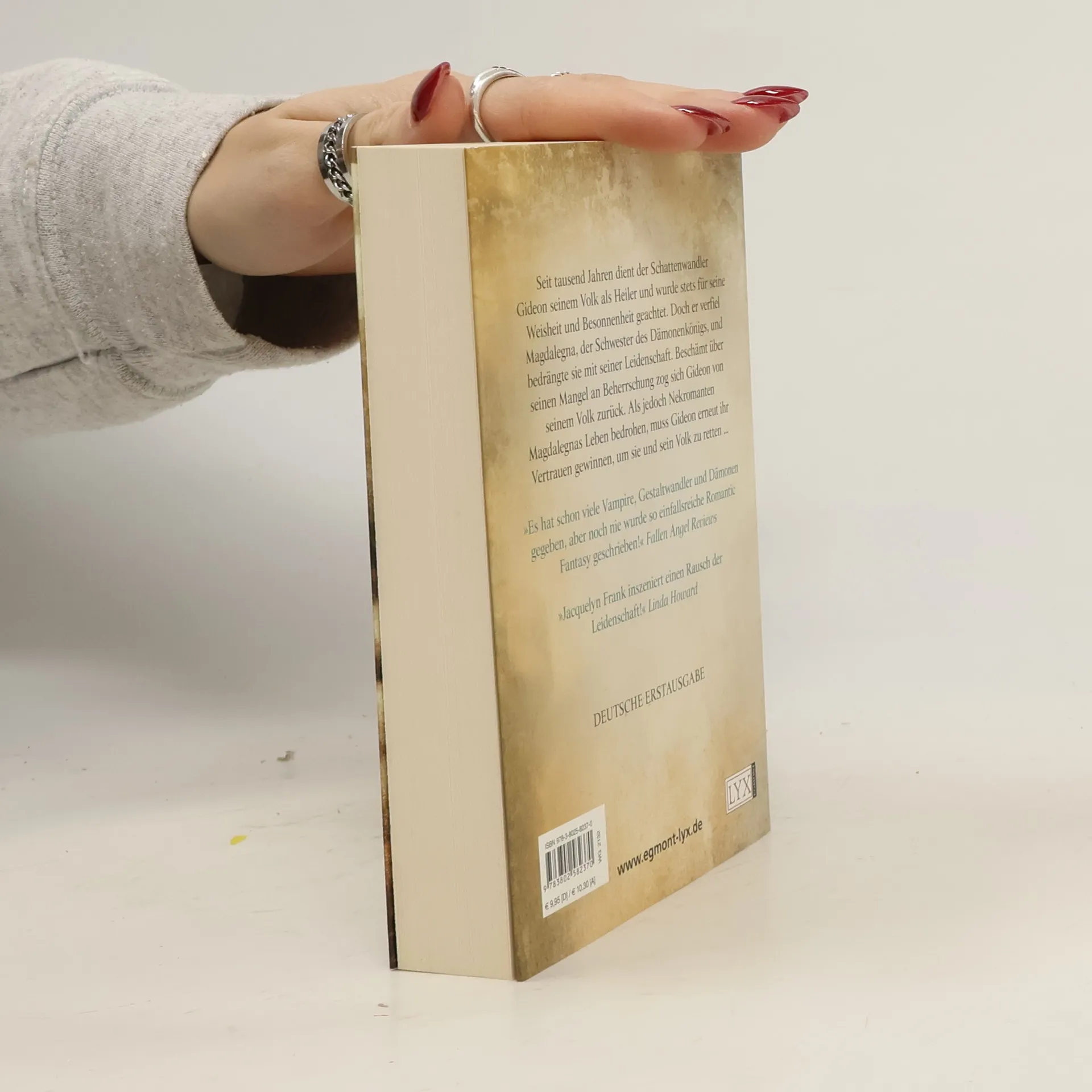 Seit über tausend Jahren dient der unsterbliche Gideon seinem Volk als Heiler. Als ältester männlicher Schattenwandler ist er für seine Weisheit und Besonnenheit bekannt. Doch selbst er ist empfänglich für die alles verzehrende Begierde, welche die Schattenwandler bei Vollmond erfasst - wie er vor neun Jahren erfahren musste, als er sich in Magdalegna verliebte, die schöne Tochter des Dämonenkönigs. Entsetzt über seinen Mangel an Selbstbeherrschung versteckte sich Gideon vor seiner Geliebten. Doch nun bedrohen Nekromanten Magdalegnas Leben, und Gideon muss ihr Vertrauen zurückgewinnen, um sie und sein Volk zu retten.
