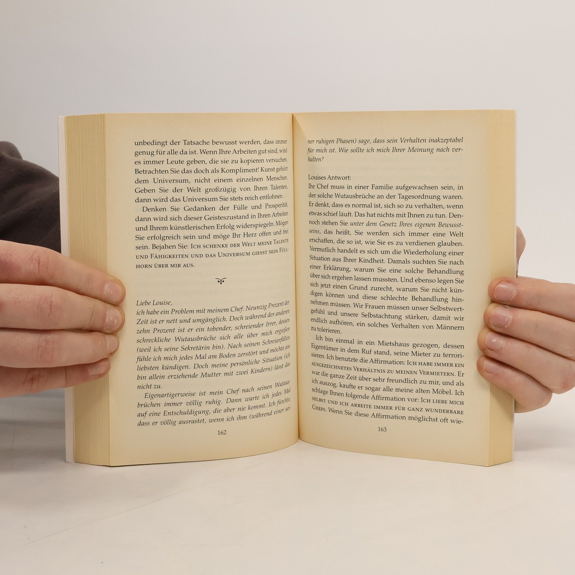Feinfühlig und weise beantwortet Amerikas bekannteste spirituelle Lebensberaterin, Louise L. Hay, in diesem Buch die Fragen ihrer Leserinnen und Leser. Sie bietet ihnen wertvolle Unterstützung auf dem Weg zur Selbsterkenntnis und hilft, auch Lebenskrisen wie Trennungen, Trauerfälle, Ängste und schwere Krankheiten zu meistern.
