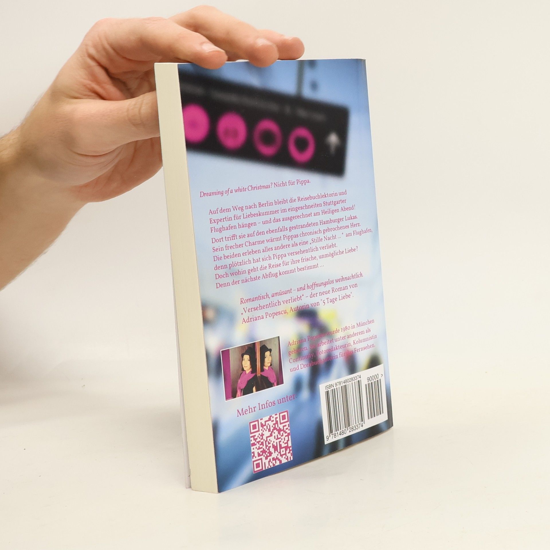 Dreaming of a white Christmas? Nicht für Pippa. Auf dem Weg nach Berlin zu ihrer Familie bleibt die Reisebuchlektorin und Liebeskummer-Expertin im eingeschneiten Stuttgarter Flughafen hängen – und das ausgerechnet am Heiligen Abend! Dort trifft sie auf den ebenfalls gestrandeten Hamburger Lukas. Sein frecher Charme wärmt Pippas chronisch gebrochenes Herz. Die beiden erleben alles andere als eine “Stille Nacht … “ am Flughafen, und plötzlich hat sich Pippa versehentlich verliebt. Doch wohin geht die Reise für ihre frische, unmögliche Liebe? Denn der nächste Abflug kommt bestimmt …