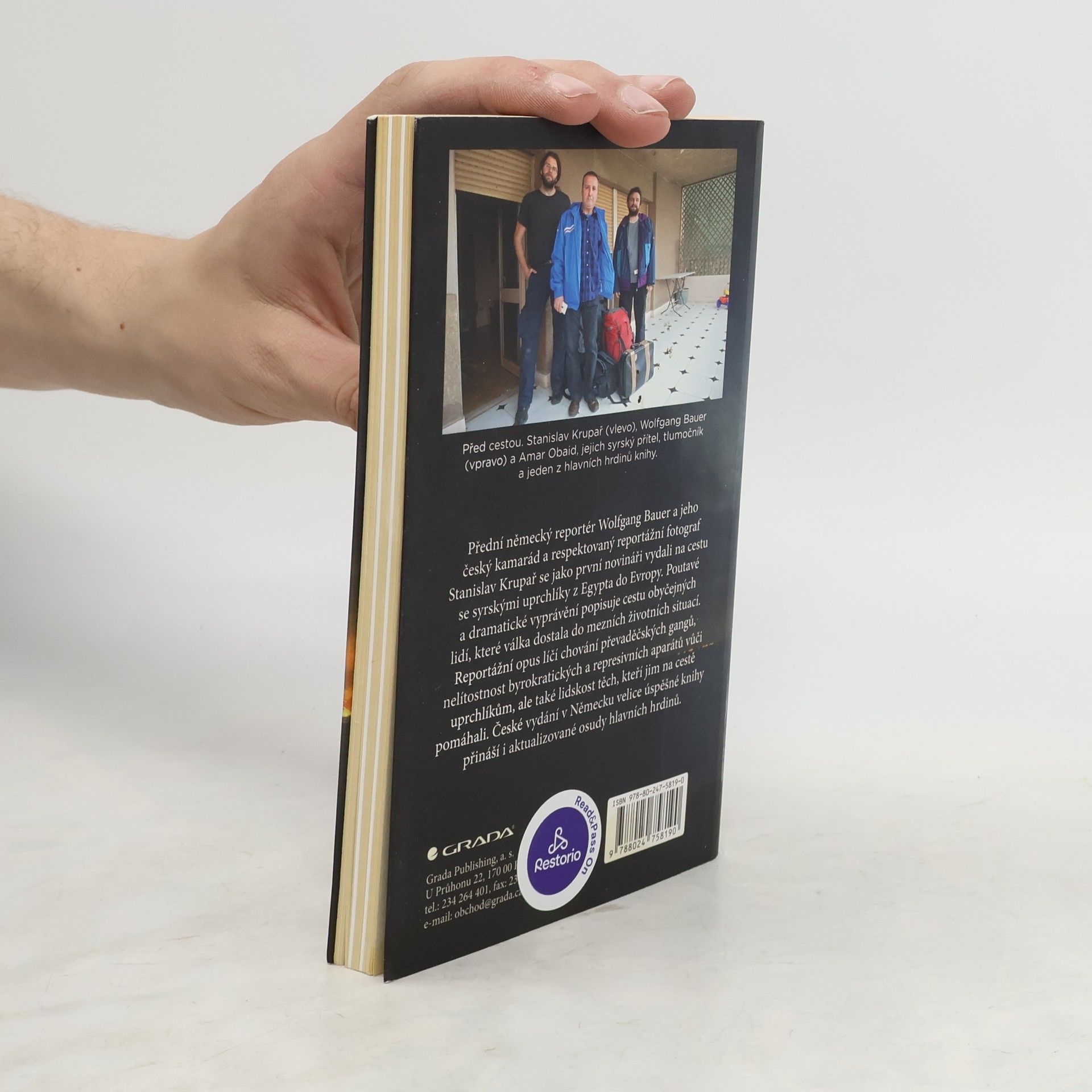 Přední německý reportér Wolfgang Bauer a jeho český kamarád a respektovaný reportážní fotograf Stanislav Krupař se jako první novináři vydali na cestu se syrskými uprchlíky z Egypta do Evropy. Poutavé a dramatické vyprávění popisuje cestu obyčejných lidí, které válka dostala do mezních životních situací. Reportážní opus líčí chování převaděčských gangů, nelítostnost byrokratických a represivních aparátů vůči uprchlíkům, ale také lidskost těch, co jim na cestě pomáhali. České vydání v Německu velice úspěšné knihy přináší i aktualizované osudy hlavních hrdinů.
