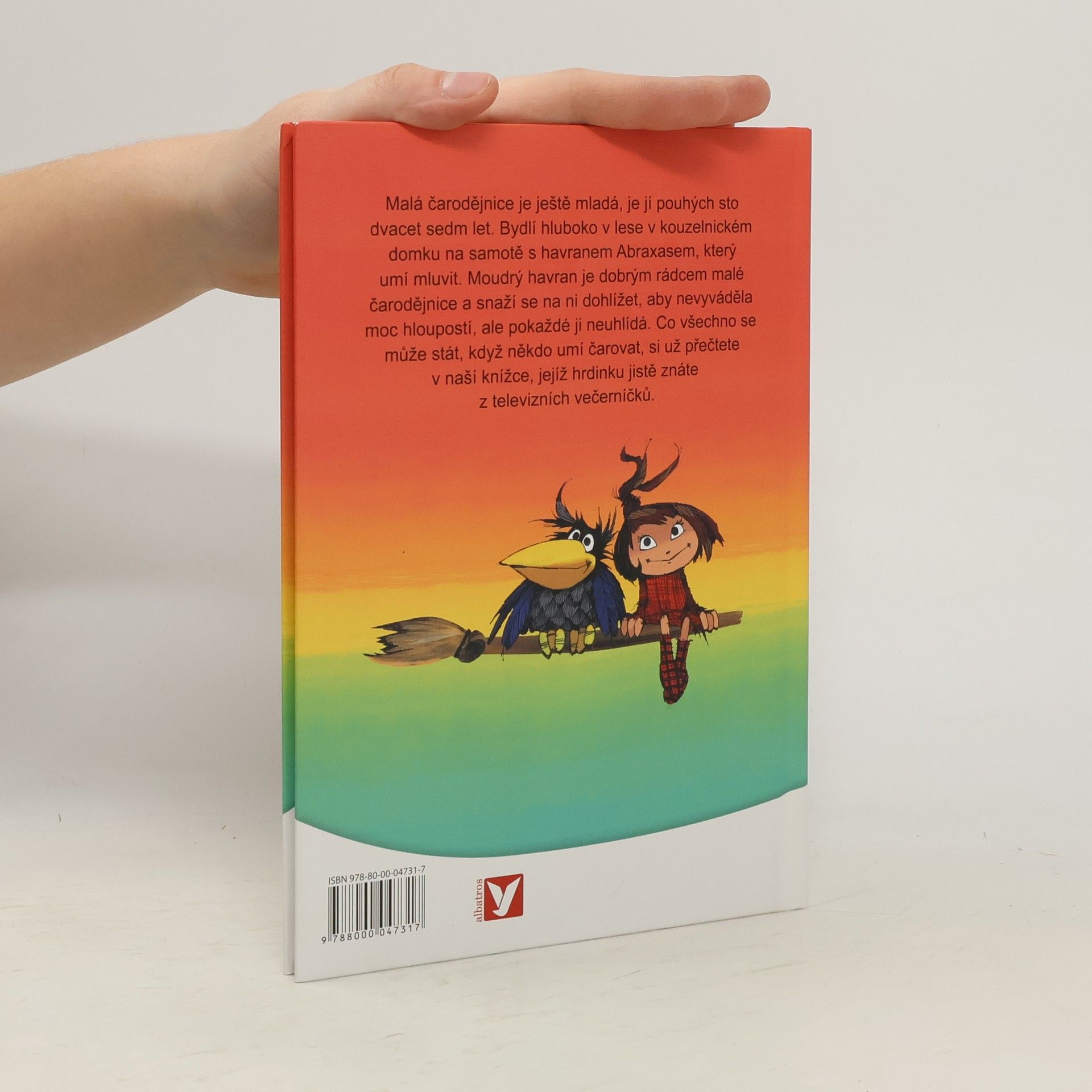Malá čarodějnice je ještě mladá, je jí pouhých sto dvacet sedm let. Bydlí hluboko v lese na samotě s havranem Abraxasem, který umí mluvit. Moudrý havran je dobrým rádcem malé čarodějnice a snaží se na ni dohlížet, aby nevyváděla moc hloupostí, ale pokaždé ji neuhlídá. Co všechno se může stát, když někdo umí čarovat, si už přečtete v naší knížce, jejíž hrdinku jistě znáte z televizních večerníčků.
