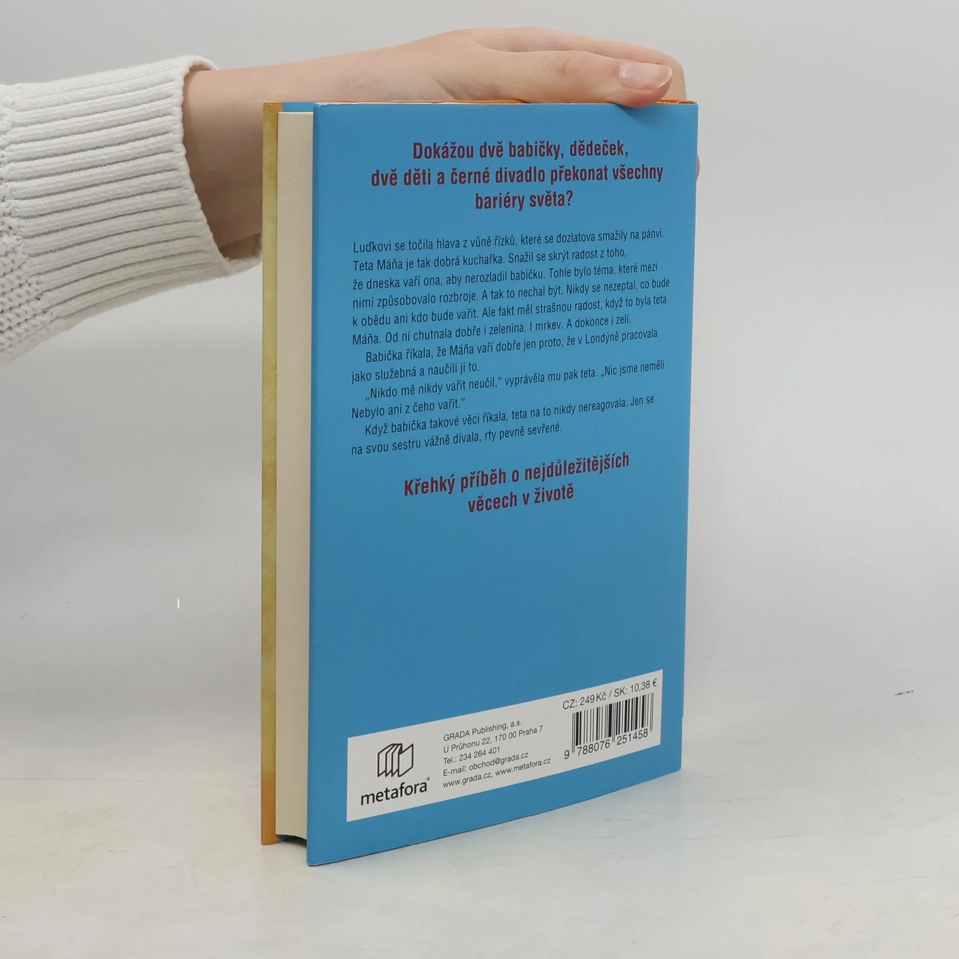 Praha, 1938 – Eva s Máňou se vracejí z posledního sletu Sokola, když se nechtěně srazí s rozzuřeným mužem. Jeho nenávist a blížící se válka mění jejich životy. Máňa se musí sbalit a emigrovat do neznáma… Praha, 1980 – Desetiletý Luděk umí být neviditelný, skáče a prosmýkne se skrze šedivé mraky nad městem. Je svobodný a jeho domov je teplý a plný lásky, čeká na něj babička. Melbourne, 1980 – Malá liška se drží babiččiny ruky, když stoupají k jejich bytu. Vůně tabáku a čerstvě upečených koláčků je vítá. Tento domov, který vybudovali čeští imigranti Máňa s Billem, je pro ni prosycen duchem Prahy a vzpomínkami na ty, které museli opustit. Je někde život snazší? Je lepší zůstat nebo odejít? I uprostřed temnoty lze zahlédnout barvy. Křehký příběh je poctou silným ženám, které udržují rodinná pouta. Je to úsměvná vzpomínka na druhou polovinu minulého století vyprávěná z pohledu šťastného dítěte obklopeného láskou. Autorka vzdává hold svým prarodičům, kteří jí vytvořili domov, a Černému divadlu Jiřího Srnce, jež vnášelo barvy do temnoty.
