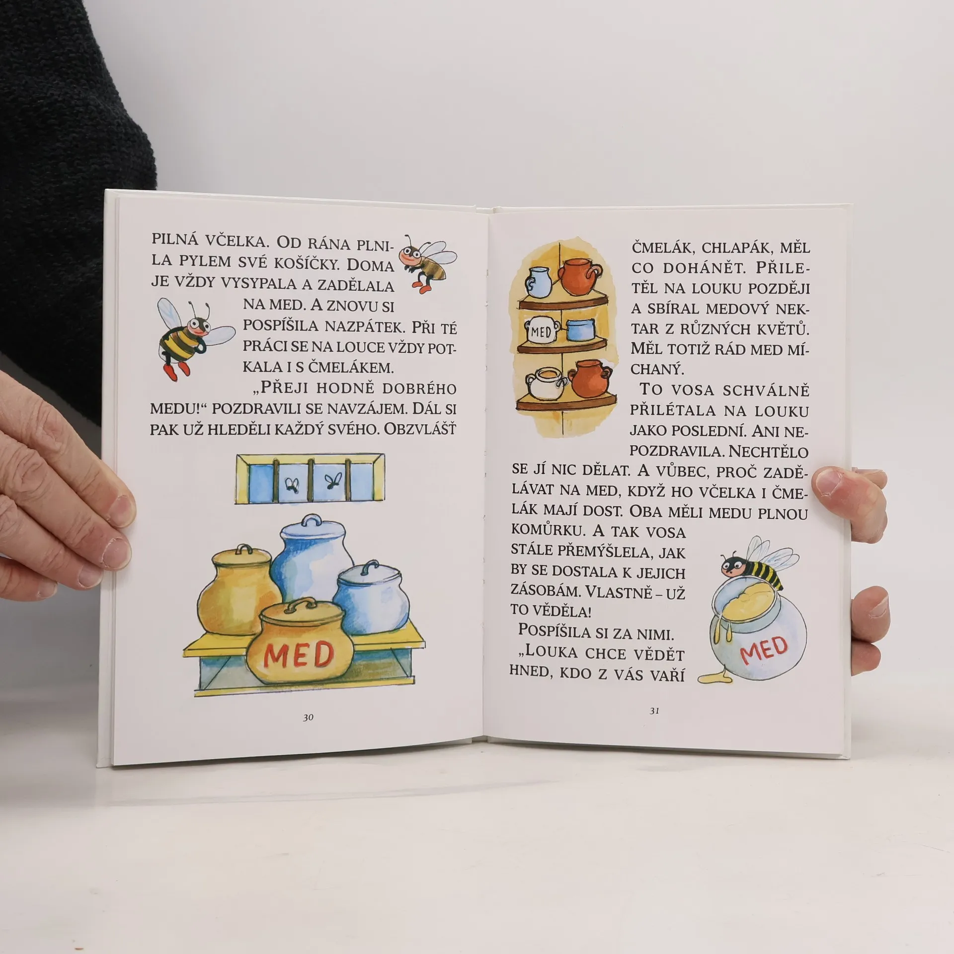 Kniha s velkými písmeny pro malé čtenáře obsahuje tyto pohádky: Sojčí pohádka, Liščí pohádka, Nejlepší med, Krtek králem, Kohout Fejfara.