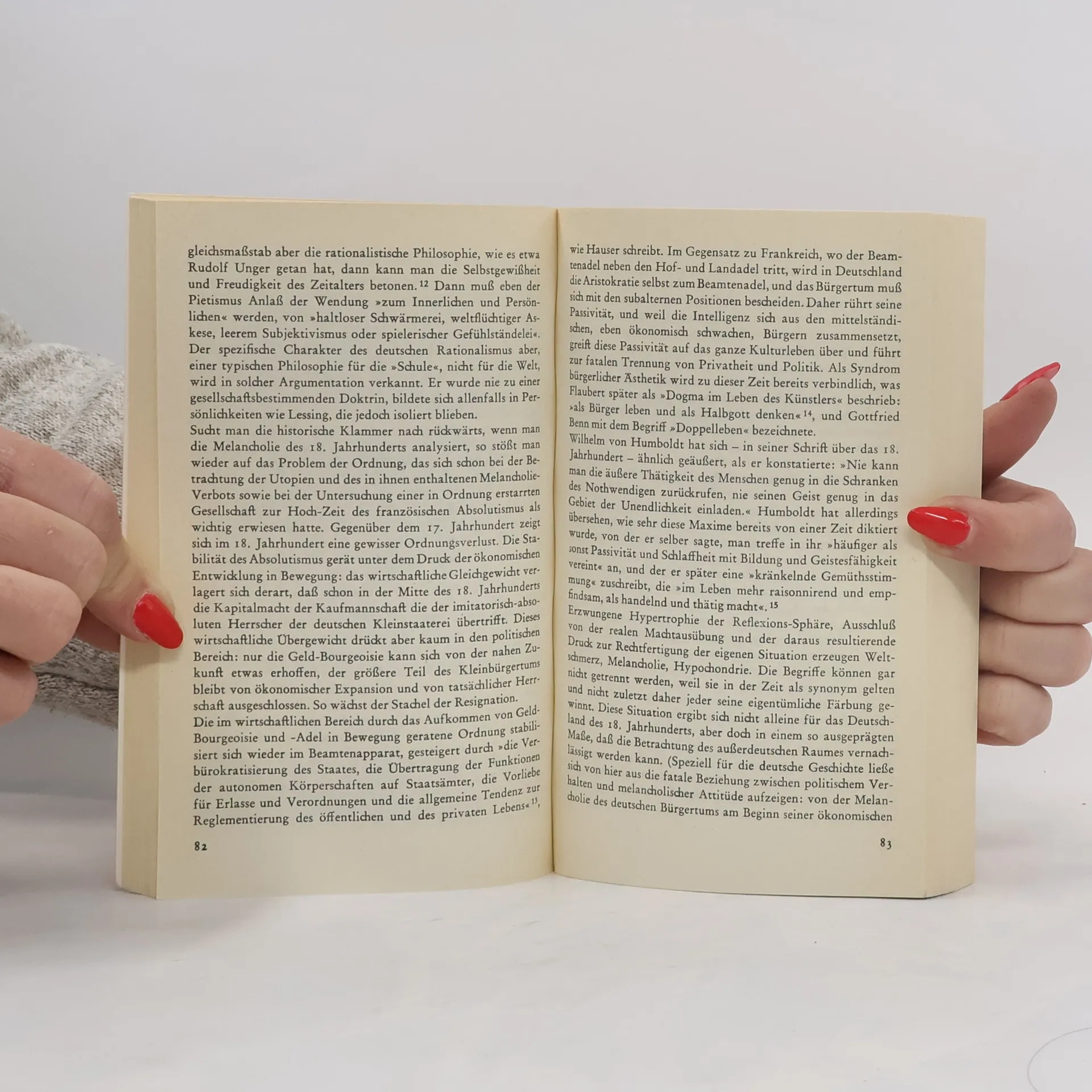 Lepenies' Studie über Melancholie und Gesellschaft erschien zuerst 1969. Melancholie wird als sozial bedingtes Phänomen dargestellt - auch und gerade dort, wo melancholisches Verhalten als Gesellschaftsflucht erscheint. Die benutzten Quellen sind unterschiedlicher Natur: der Roman steht neben der Utopie, neben soziologischer Analyse der Aphorismus. Diese Disparatheit erzwingt der Gegenstand: weder Melancholie noch utopisches Denken und Langeweile lassen sich einer einzelnen Disziplin zuschlagen und in ihr verarbeiten.