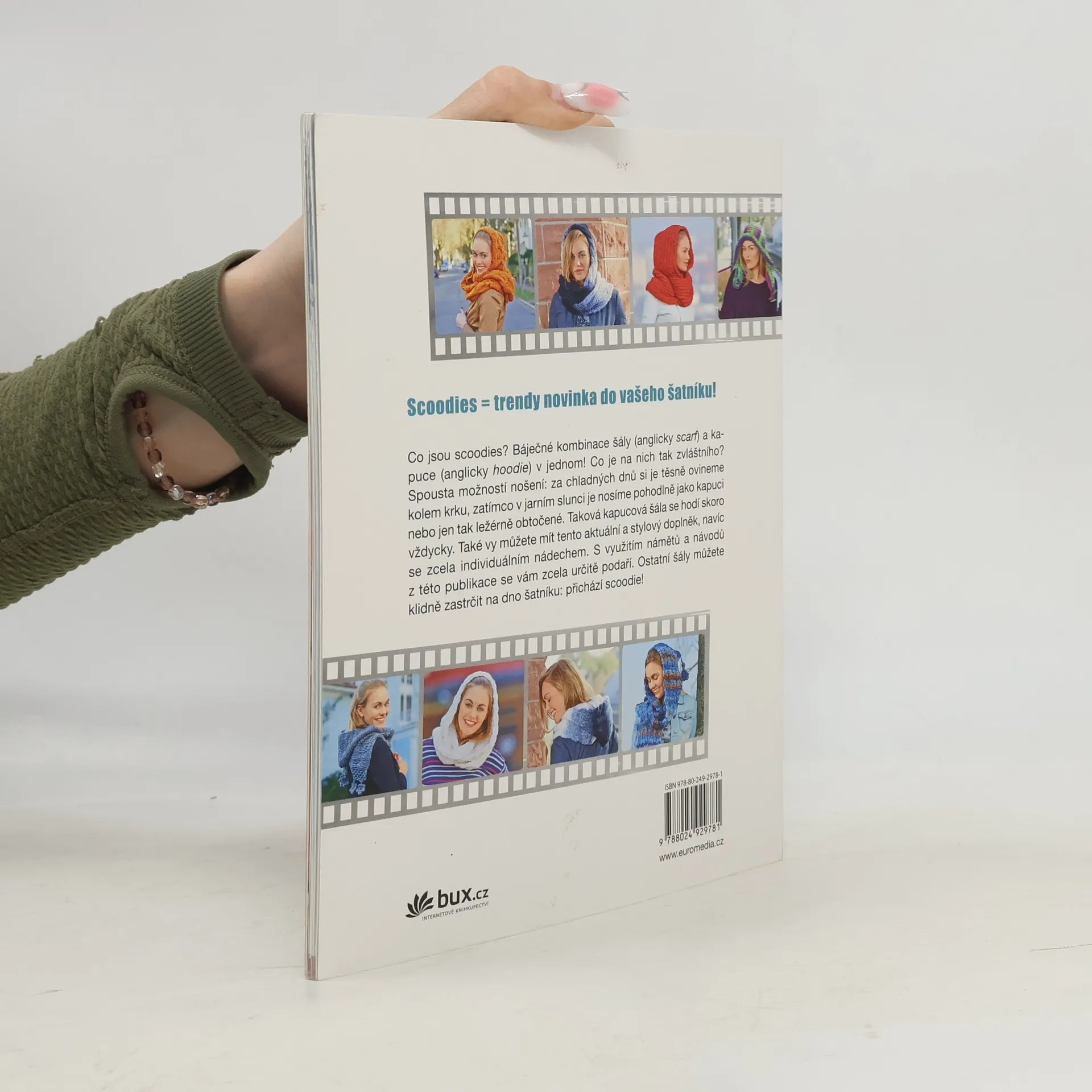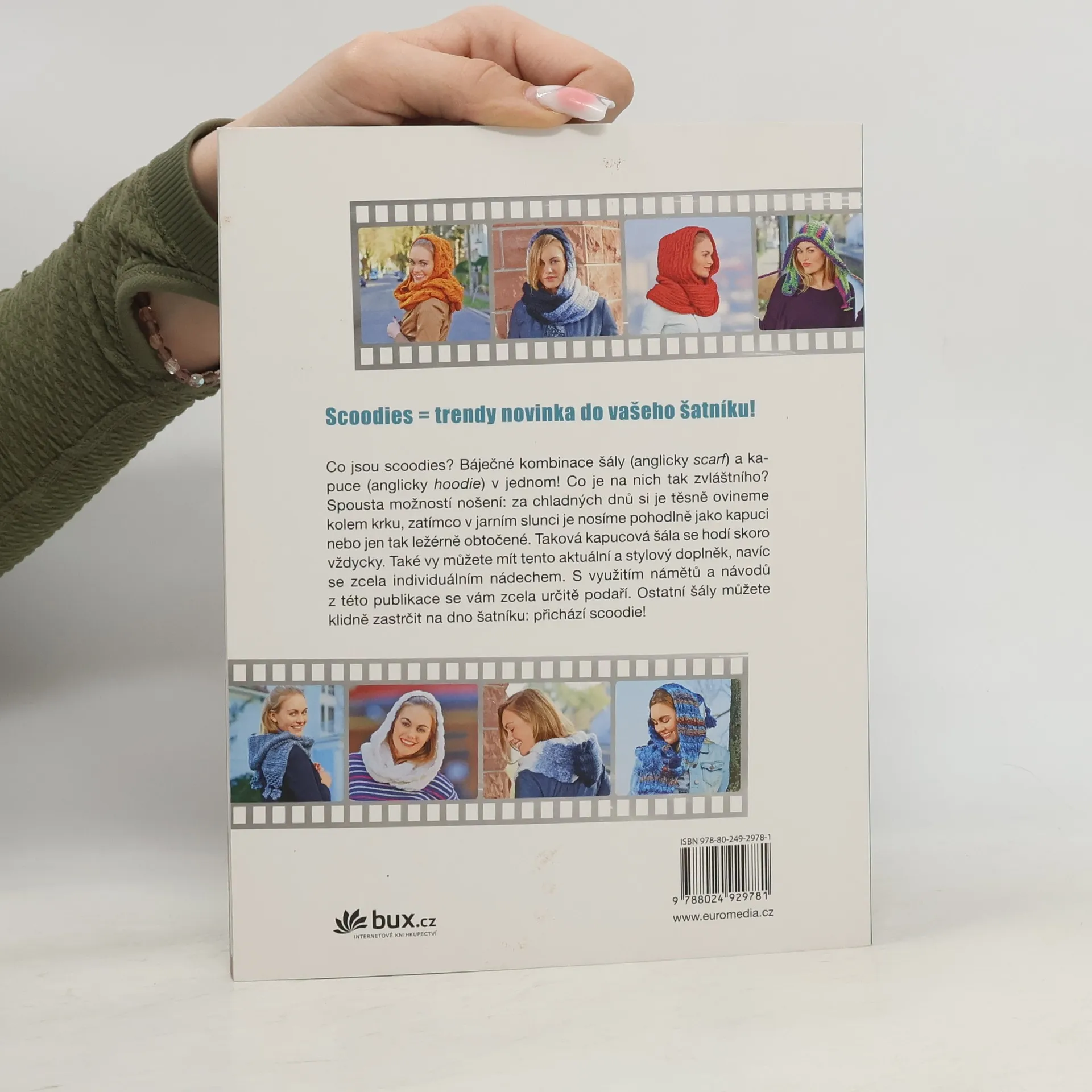 Není to šála, není to čepice, je to scoodie! Upleťte si i vy tento hebký trend a zachumlejte se – v knize najdete nejrůznější inspirace, ať již pro elegantní nebo pestrobarevné kapucové šály pro každou příležitost. Každá fotka je doprovázena přehledným návodem i tipem na použitý materiál.