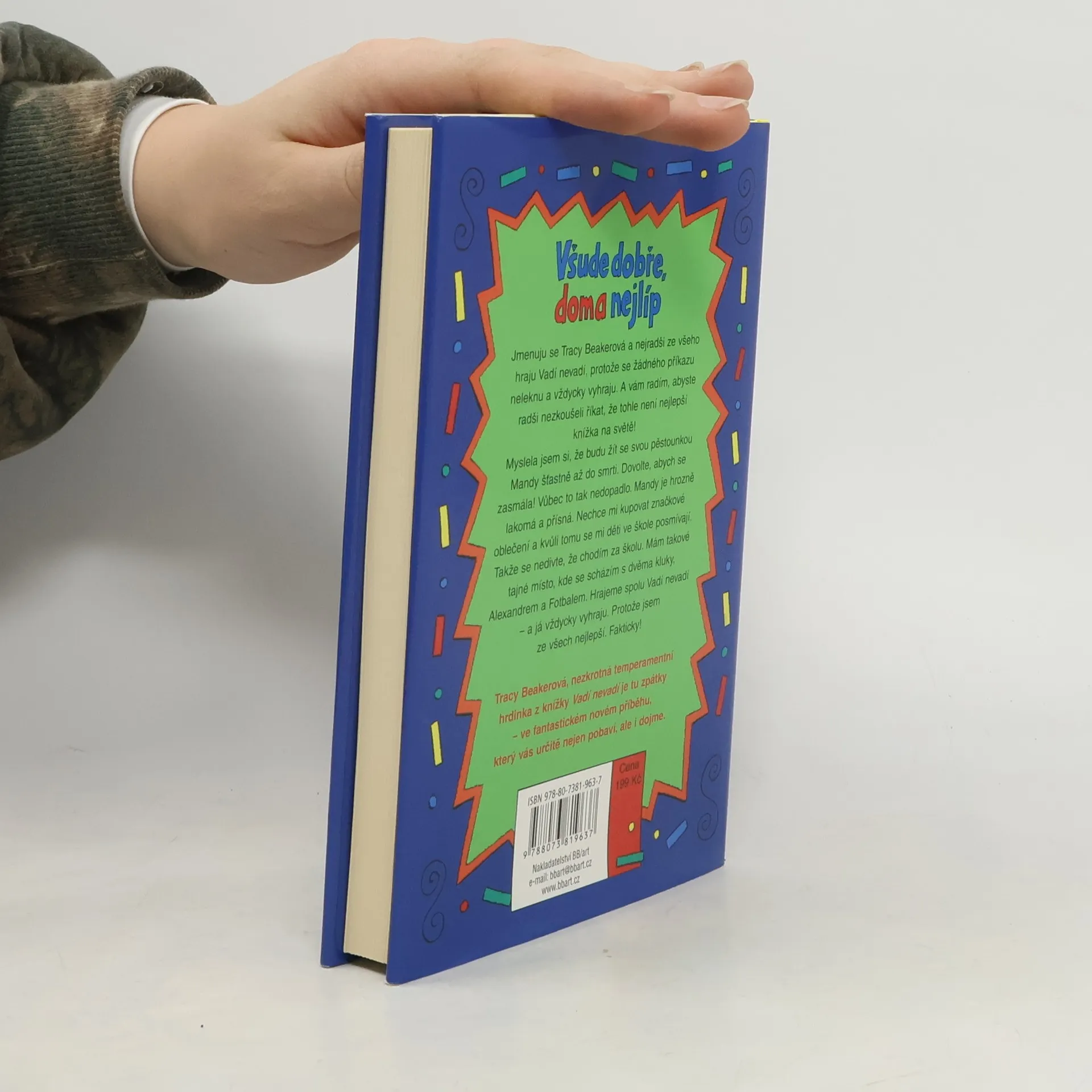 Jmenuju se Tracy Beakerová a nejradši ze všeho hraju Vadí nevadí, protože se žádného příkazu neleknu a vždycky vyhraju. A vám radím, abyste radši nezkoušeli říkat, že tohle není nejlepší knížka na světě! Myslela jsem si, že budu žít se svou pěstounkou Mandy šťastně až do smrti. Dovolte, abych se zasmála! Vůbec to tak nedopadlo. Mandy je hrozně lakomá a přísná. Nechce mi kupovat značkové oblečení a kvůli tomu se mi děti ve škole posmívají. Takže se nedivte, že chodím za školu. Mám takové tajné místo, kde se scházím s dvěma kluky, Alexandrem a Fotbalem. Hrajeme spolu Vadí nevadí - a já vždycky vyhraju. Protože jsem ze všech nejlepší. Fakticky! 4. vydání