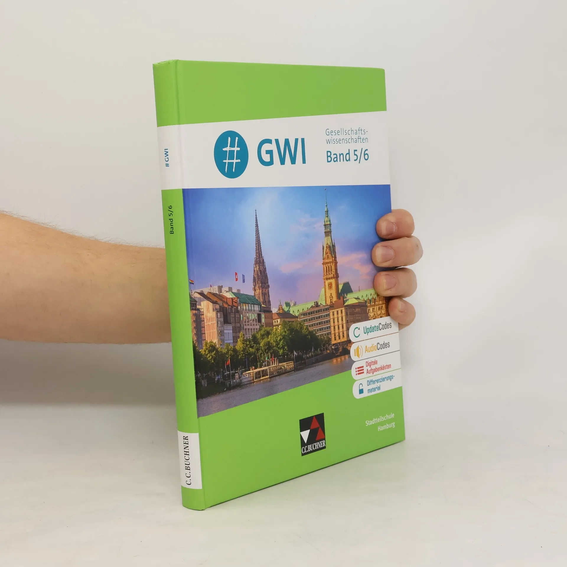 Entdecken Sie das Schulbuch der Zukunft! Unser modernes Schulbuch setzt Maßstäbe mit innovativen Features: UpdateCodes für topaktuelle Grafiken AudioCodes für vertonte Inhalte digitale Aufgabenkästen mit zusätzlichen Elementen Differenzierungsmaterialien zum individuellen Lernen Mehr Infos finden Sie auf www.ccbuchner.de/gwi-hybrid #GWI - Hamburg bietet Ihnen alles, was ein aktueller, innovativer und vor allem differenzierender Unterricht von heute benötigt: Schülerorientierung (Fallbeispiele und Leitfiguren) Differenzierung (im Lehrwerk und über die Differenzierungsmaterialien) Digitale Aufgabenkästen (QR-Codes) mit weiterführenden Materialien (Methodenkarten, Differenzierungsmaterial, usw.) Förderung des selbstgesteuerten Lernens ("Gemeinsam aktiv") Thematische Vorentlastung (Auftaktseiten und Einstiegsmaterial) Digitales Lehrermaterial click & teach Die Konzeption von #GWI - Hamburg bietet einerseits die Möglichkeit, problemorientierte und schülernah aufbereitete Inhalte entlang von Doppelseiten zu bearbeiten, die sich am didaktischen Aufbau von Unterrichtsstunden orientieren. Gleichzeitig können die Schülerinnen und Schüler mithilfe der Rubrik "Gemeinsam aktiv" größere Einheiten durch selbstgesteuertes Lernen projektartig in Gruppen erschließen. Dadurch können Sie Ihren Unterricht einfach, schnell, besonders vielfältig und spannend gestalten. Neben der Differenzierung im Lehrwerk bietet das Differenzierungsmaterial für #GWI - Hamburg ein breites Angebot an zusätzlichen Differenzierungsmöglichkeiten und wird somit den unterschiedlichen Lernvoraussetzungen der Schülerinnen und Schüler gerecht. Die Materialien unterstützen sprach- oder lernschwache Schülerinnen und Schüler dabei, das Lernziel einer Unterrichtseinheit ohne Probleme zu erreichen. Ein besonderes Kennzeichen der Reihe ist die Orientierung an der Lebenswelt der Schülerinnen und Schüler. Durch Fallbeispiele und Leitfiguren werden sie direkt angesprochen. Eine kreative Vielfalt aus Bild-, Grafik- und Textmaterial, aktivierenden Aufgaben, Methodenseiten und Abschlussdoppelseiten vervollständigen das Angebot.