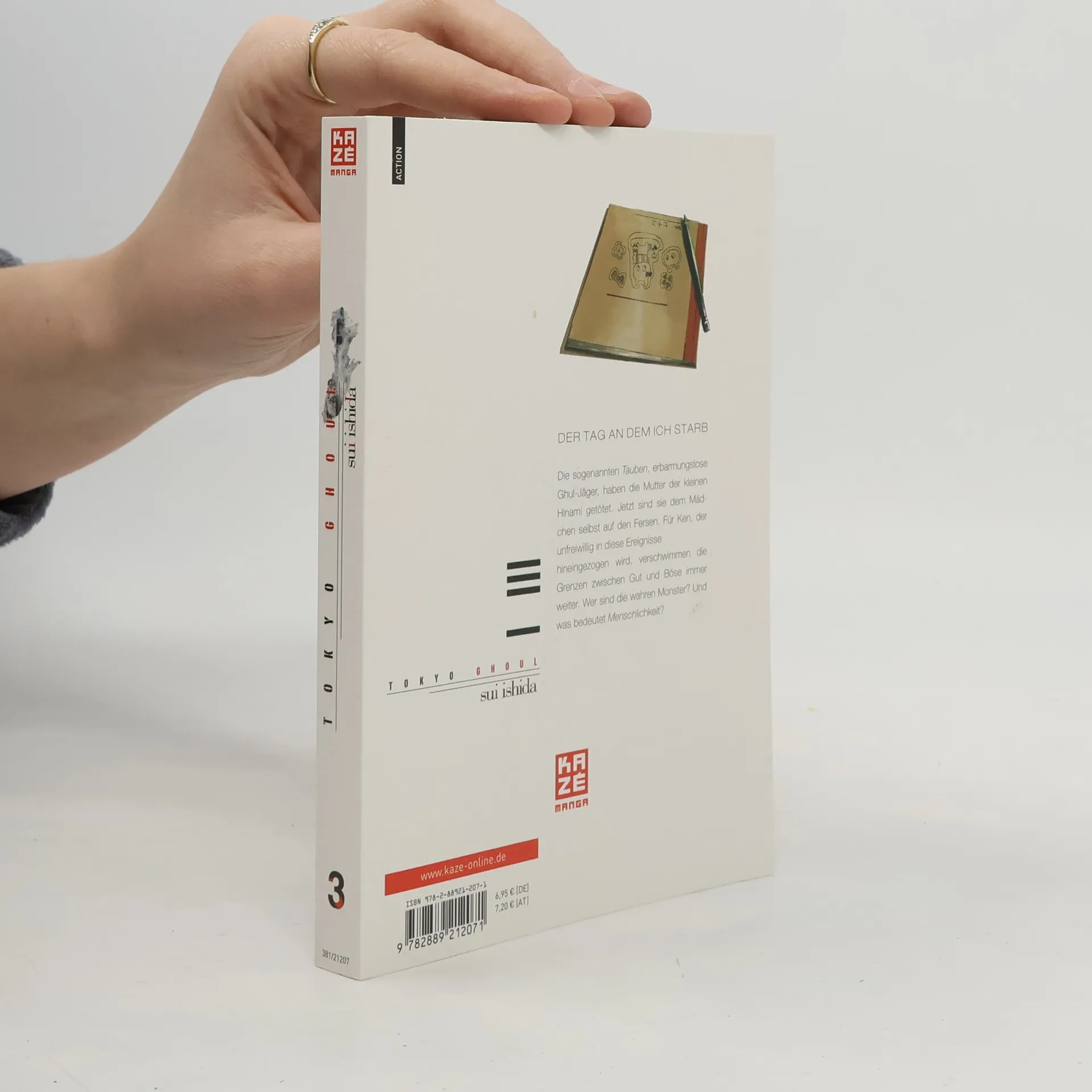 Die sogenannten Tauben, erbarmungslose Ghul-Jäger, haben die Mutter der kleinen Hinami getötet. Jetzt sind sie dem Mädchen selbst auf den Fersen. Für Ken, der unfreiwillig in diese Ereignisse hineingezogen wird, verschwimmen die Grenzen zwischen Gut und Böse immer weiter. Wer sind die wahren Monster? Und was bedeutet Menschlichkeit?