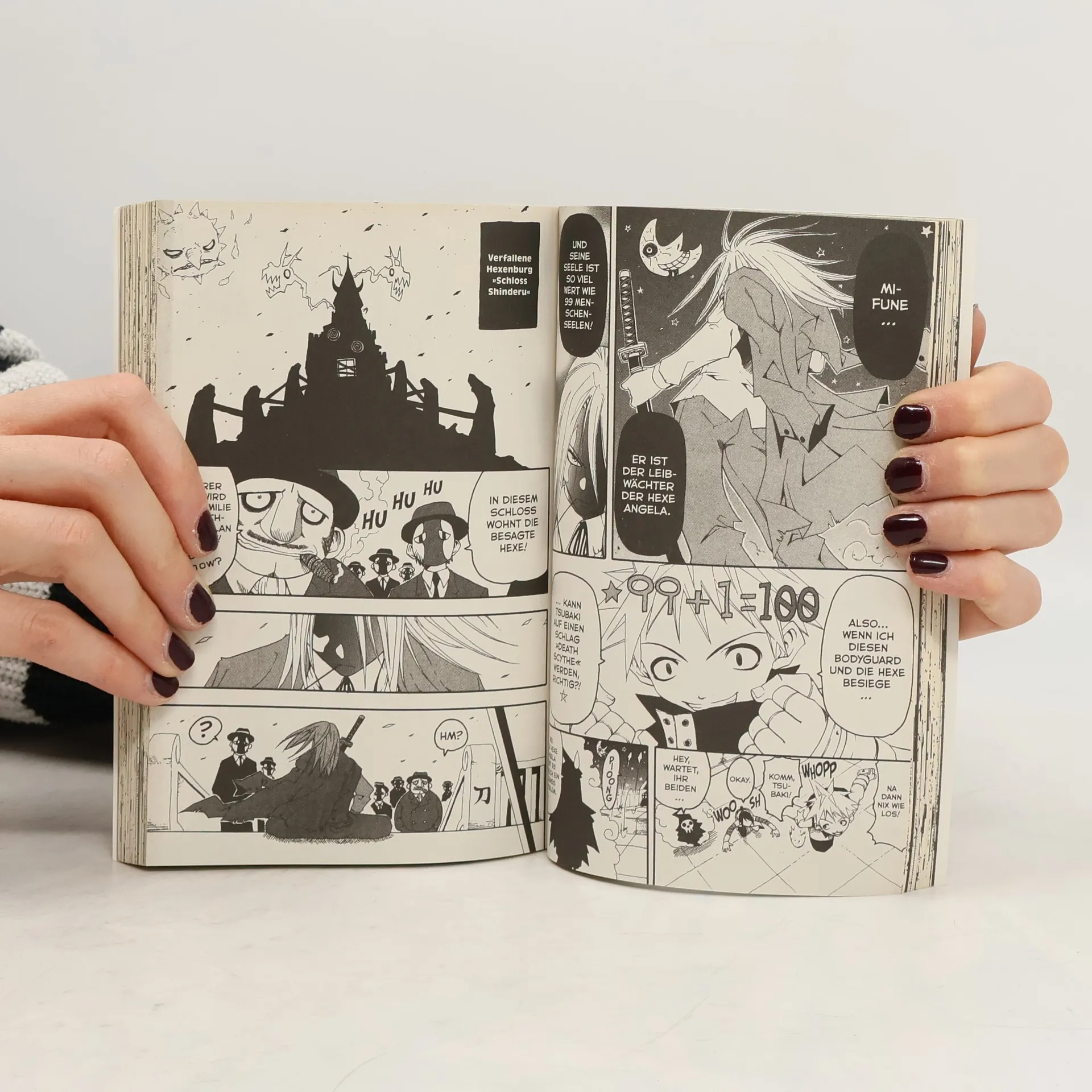 Einmal Seele zum Mitnehmen, bitte! Maka ist eine Waffenschmiedin in spezieller Ausbildung. Ihre Sense namens „Soul Eater“ hat ein Eigenleben und nimmt außerhalb des Kampfes die Gestalt eines ultracoolen Jungen an. Um eine „Waffe des Todesgottes“ zu erschaffen, muss sich Soul Eater exakt 99 böse Seelen und eine Hexenseele einverleiben, nur so kann Maka ihre Ausbildung abschließen. Die nötigen Seelen wurden nach einigem Aufwand „zubereitet“ und verschlungen, doch an der Seele einer Hexe beißen sich die beiden die Zähne aus. Müssen sie nun vielleichtsogar wieder ganz von vorne beginnen...? Eine rasante Fressorgie beginnt, auch zwischen den Mahlzeiten genießbar!