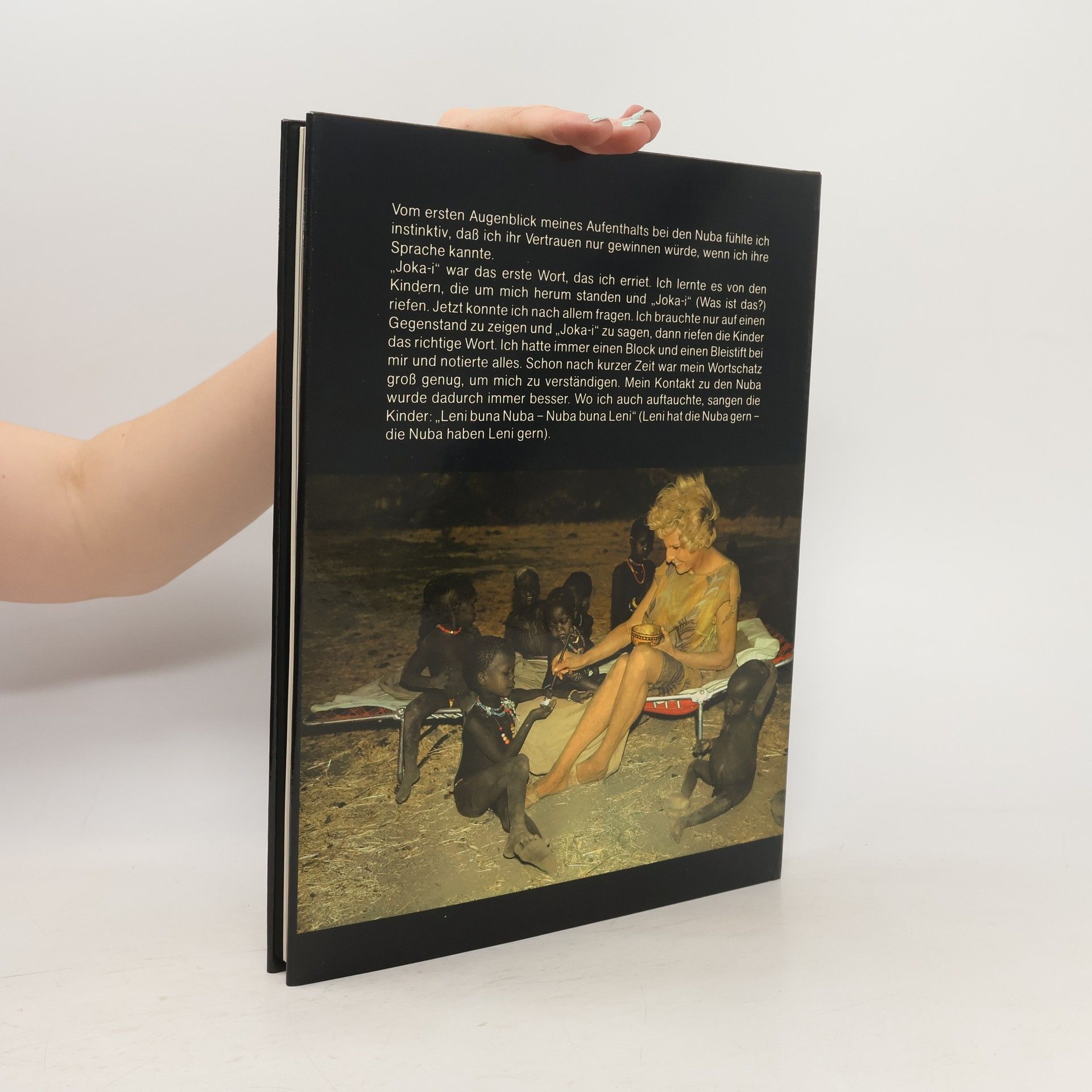 "Dieses Bild veränderte mein Leben!", erinnert sich Leni Riefenstahl, nachdem sie auf einem Foto des Fotografen George Rodger das erste Mal die stolzen Nuba-Ringkämpfer sah. Nicht einmal Missionare hatten es bisher geschafft, das Vertrauen des geheimnisvollen Stammes zu gewinnen. Leni Riefenstahl dokumentiert auf einzigartigen Bildern das Leben des Stammes, sie veranschaulicht Bräuche wie das Tätowieren oder den Messerkampf und erläutert in ihren Texten die Lebensweise in der Natur. Vor allem jedoch zeigt sie die unvergleichliche Anmut und Einfachheit der Menschen - eine Welt wie sie unserer nicht ferner sein könnte