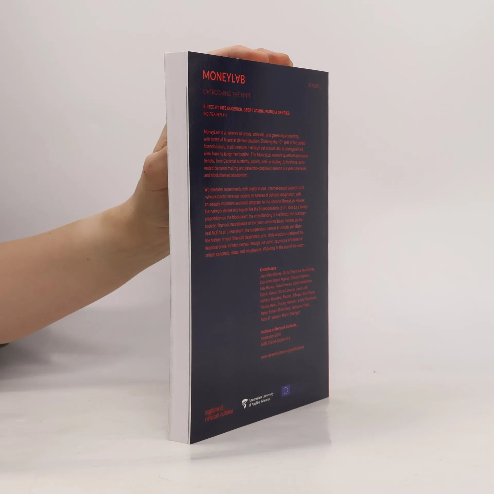 MoneyLab is a network of artists, activists, and geeks experimenting with forms of financial democratization. Entering the 10th year of the global financial crisis, it still remains a difficult yet crucial task to distinguish old wine from its fancy new bottles. The MoneyLab network questions persistent beliefs, from Calvinist austerity, growth, and up-scaling, to trustless, automated decision making and (anarcho-)capitalist dreams of cybercurrencies and blockchained solutionism. We consider experiments with digital coops, internet-based payment and network-based revenue models as spaces of political imagination, with an equally important aesthetic program. In this second MoneyLab Reader the network delves into topics like the financialization of art; love as a binary proposition on the blockchain; the crowdfunding of livelihood; the cashless society; financial surveillance of the poor; universal basic income as the real McCoy or a real sham; the cooperative answer to Airbnb and Uber; the history of your financial dashboard; and, Hollywoodʹs narration of the financial crisis. Fintech rushes through our veins, causing a whirlwind of critical concepts, ideas and imaginaries. Welcome to the eye of the storm