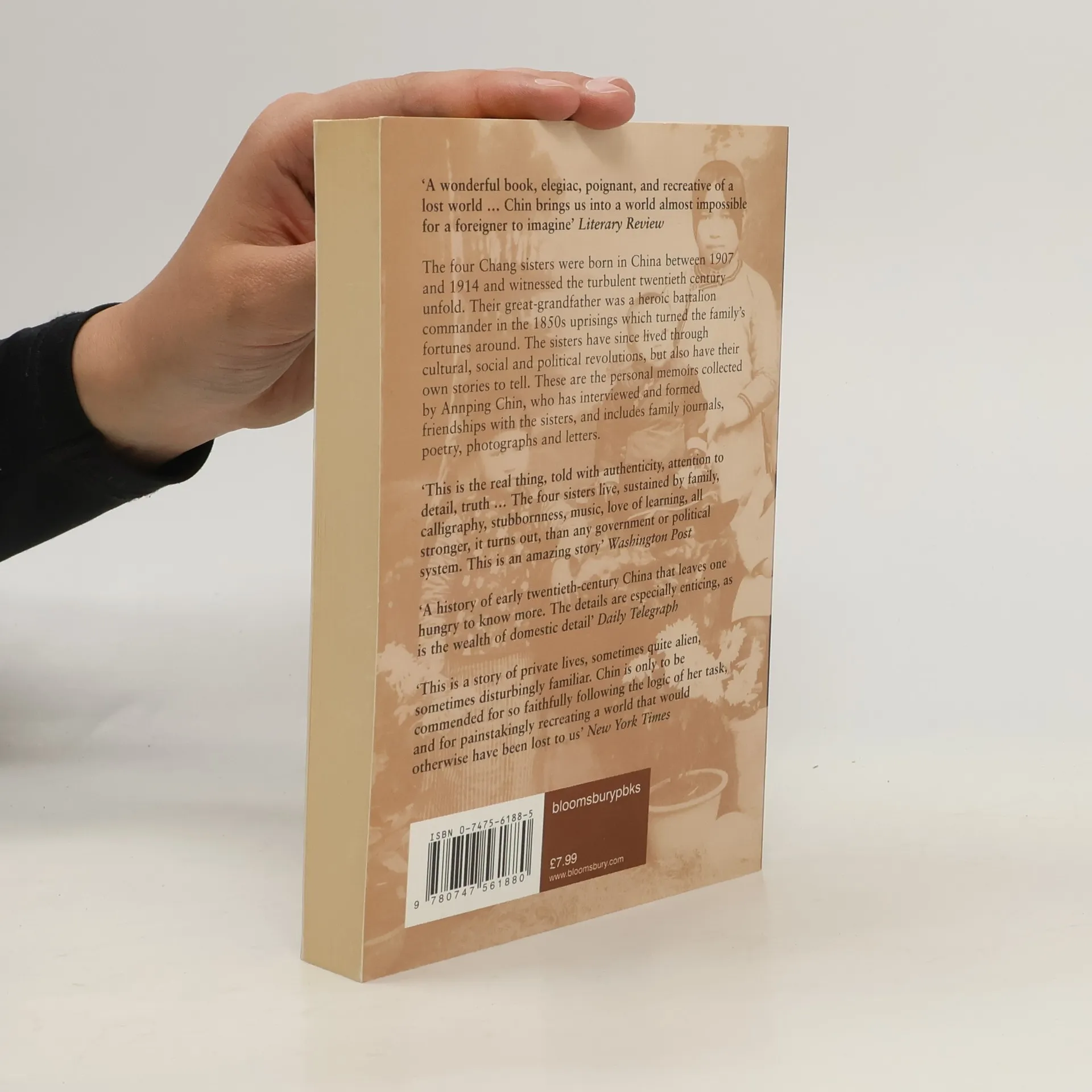 Through the stories of four sisters born between 1907 and 1914, a renowned historian examines a century of change in Chinese culture and in women's lives. Now in their late eighties and early nineties, the four Chang sisters lived through a century of historic change in China. In this extraordinary work, assembled with the benefit of letters, diaries, family histories, poetry, journals and interviews, Annping Chin shapes the story of one family into a riveting chronicle that provides a unique insight into the old China and its transition into the new. From prosperity to persecution, from foreign wars to Cultural Revolution, FOUR SISTERS OF HOFEI is an intensely personal and sweeping story that illustrates the complex history of a complex culture.