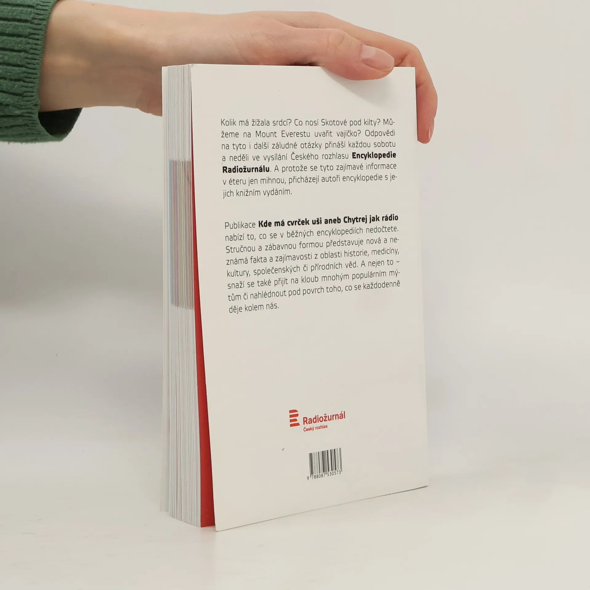Kolik má žížala srdcí? Co nosí Skotové pod kilty? Můžeme na Mount Everestu uvařit vajíčko? Odpovědi na tyto i další záludné otázky přináší každou sobotu a neděli ve vysílání Českého rozhlasu Encyklopedie Radiožurnálu. A protože se tyto zajímavé informace v éteru jen mihnou, přicházejí autoři encyklopedie s jejich knižním vydáním. Publikace Kde má cvrček uši aneb Chytrej jak rádio nabízí to, co se v běžných encyklopediích nedočtete. Stručnou a zábavnou formou představuje nová a neznámá fakta a zajímavosti z oblasti historie, medicíny, kultury, společenských či přírodních věd. A nejen to – snaží se také přijít na kloub mnohým populárním mýtům či nahlédnout pod povrch toho, co se každodenně děje kolem nás. Máte chuť si rozšířit své vědomosti a ještě se u toho pobavit? Encyklopedie Kde má cvrček uši aneb Chytrej jak rádio je ideální čtení do vlaku, na plovárnu nebo jen k ukrácení dlouhé chvíle.