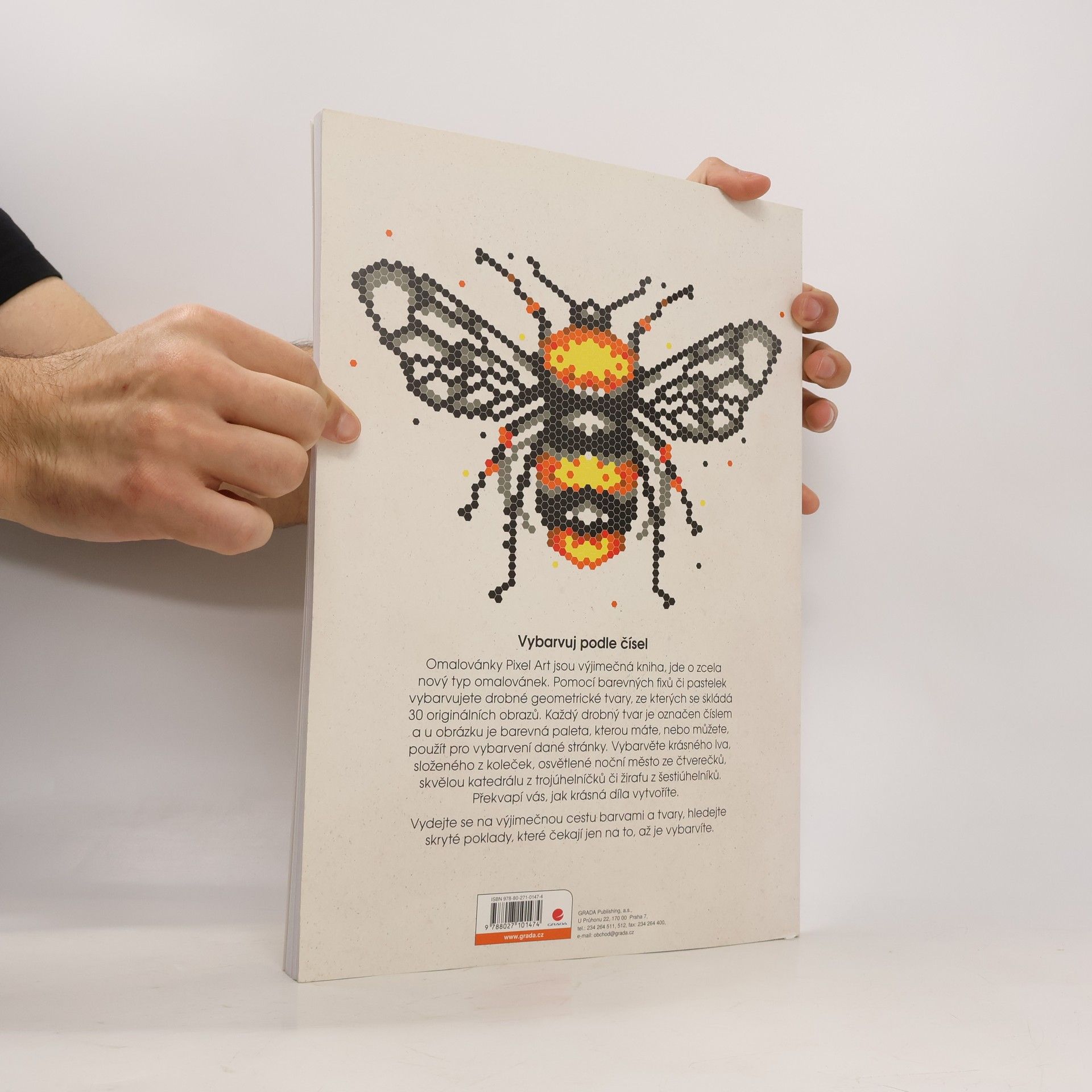 Každý drobný tvar je označen číslem a u obrázku je barevná paleta, kterou máte, nebo můžete, použít pro vybarvení dané stránky. Vybarvěte krásného lva, složeného z koleček, osvětlené noční město ze čtverečků, skvělou katedrálu z trojúhelníčků či žirafu z šestiúhelníků. Překvapí vás, jak krásné obrázky vytvoříte. Vydejte se na kouzelnou cestu barvami a tvary, hledejte skryté poklady, které čekají jen na to, až je vybarvíte. Stránky knihy jsou perforované, takže svá díla můžete snadno vytrhnout a vystavit.