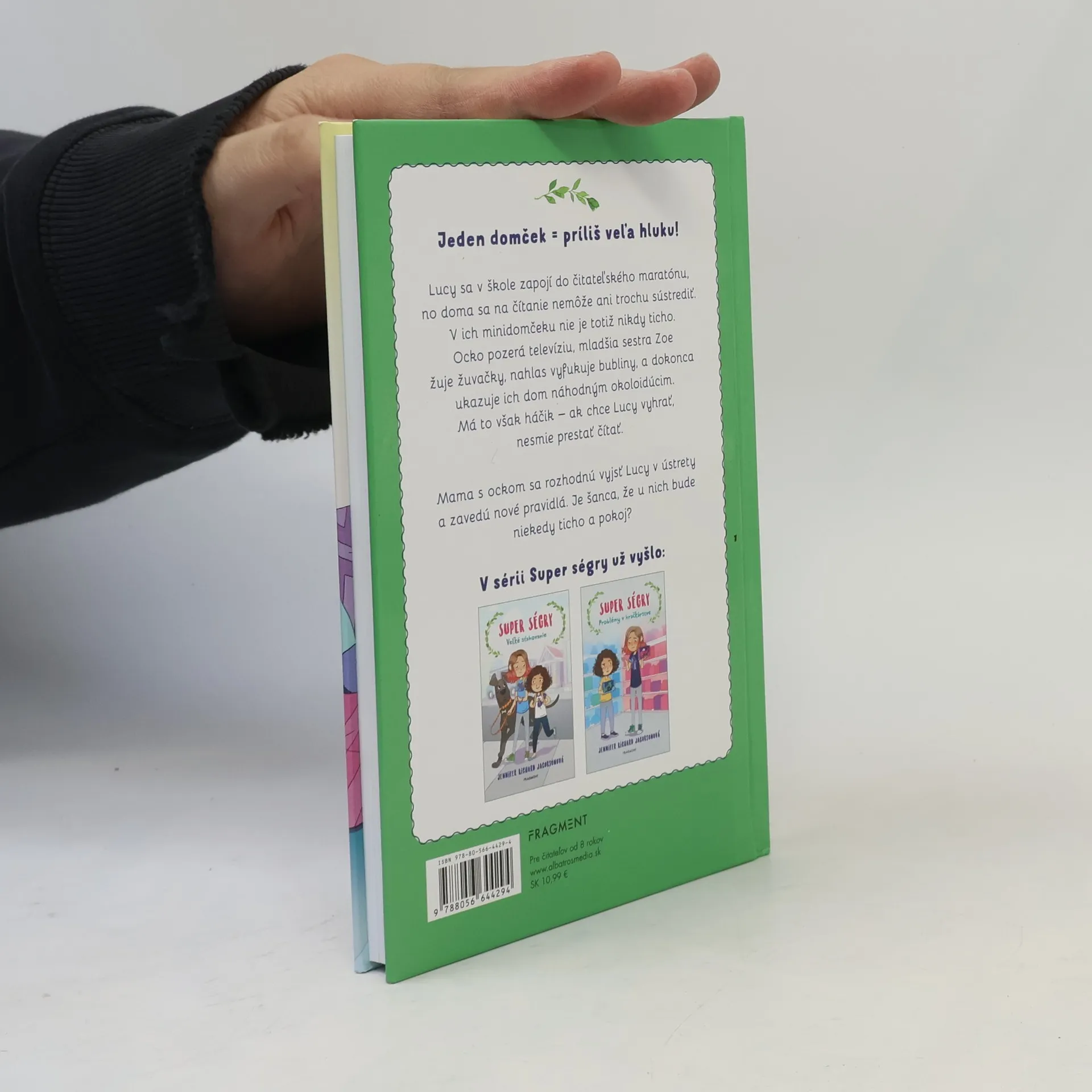 Jeden domček = príliš veľa hluku! Lucy sa v škole zapojí do čitateľského maratónu, no doma sa na čítanie nemôže ani trochu sústrediť. V ich minidomčeku nie je totiž nikdy ticho. Ocko pozerá televíziu, mladšia sestra Zoe žuje žuvačky, nahlas vyfukuje bubliny, a dokonca ukazuje ich dom náhodným okoloidúcim. Má to však jeden háčik - ak chce Lucy vyhrať, nesmie prestať čítať. Mama s ockom sa rozhodnú vyjsť Lucy v ústrety a zavedú nové pravidlá. Je šanca, že u nich bude niekedy ticho a pokoj?