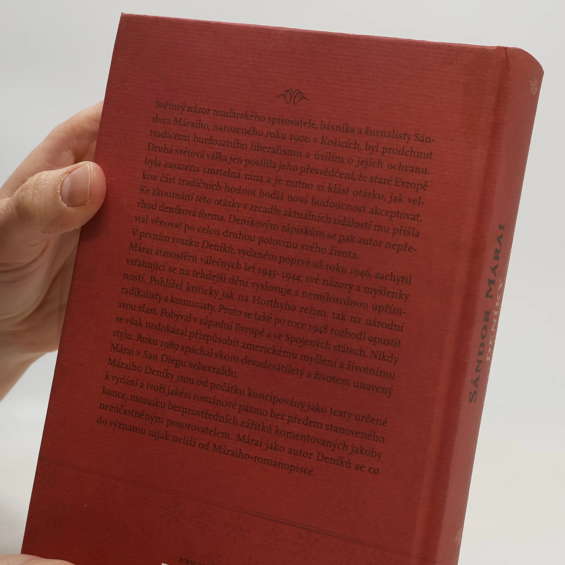 Spisovatel Sándor Márai se deníkovým zápiskům věnoval po celou druhou polovinu svého života. V prvním svazku Deníků, vydaném poprvé už roku 1946, zachytil autor atmosféru válečných let 1943–1944; své názory a myšlenky vztahující se na tehdejší dění vyslovuje s nemilosrdnou upřímností. Válka jen posílila jeho přesvědčení, že staré Evropě byla zasazena smrtelná rána, a je nutno si klást otázku, jak velkou část tradičních hodnot hodlá nová budoucnost akceptovat. Ke zkoumání této otázky v zrcadle aktuálních událostí mu přišla i později vhod deníková forma. Máraiho Deníky jsou od počátku koncipovány jako texty určené k vydání a tvoří jakési románové pásmo bez předem stanoveného konce, mozaiku bezprostředních zážitků komentovaných jakoby nezúčastněným pozorovatelem.