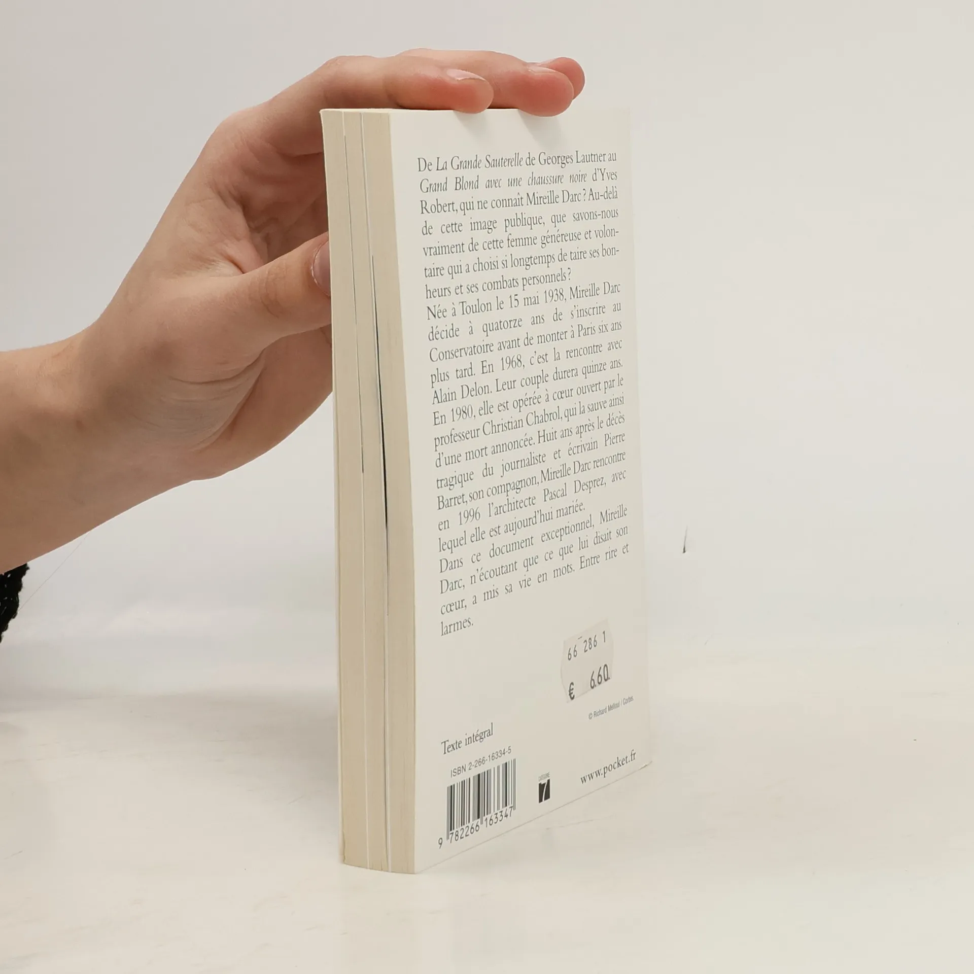 De La Grande Sauterelle de Georges Lautner au Grand Blond avec une chaussure noire d'Yves Robert, qui ne connaît Mireille Darc ? Au-delà de cette image publique, que savons-nous vraiment de cette femme généreuse et volontaire qui a choisi si longtemps de taire ses bon- heurs et ses combats personnels? Née à Toulon le 15 mai 1938, Mireille Darc décide à quatorze ans de s'inscrire au Conservatoire avant de monter à Paris six ans plus tard. En 1968, c'est la rencontre avec Alain Delon. Leur couple durera quinze ans. En 1980, elle est opérée à cœur ouvert par le professeur Christian Chabrol, qui la sauve ainsi d'une mort annoncée. Huit ans après le décès tragique du journaliste et écrivain Pierre Barret, son compagnon, Mireille Darc rencontre en 1996 l'architecte Pascal Desprez, avec lequel elle est aujourd'hui mariée. Dans ce document exceptionnel, Mireille Darc, n'écoutant que ce que lui disait son cœur, a mis sa vie en mots. Entre rire et larmes.