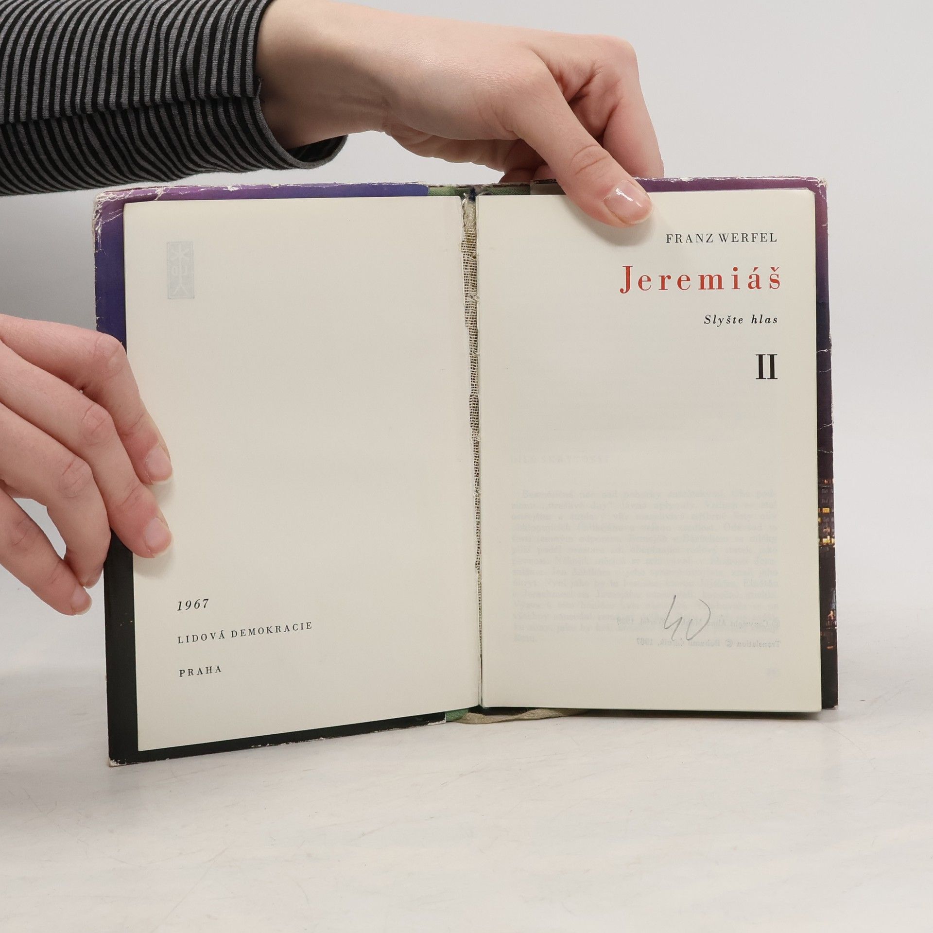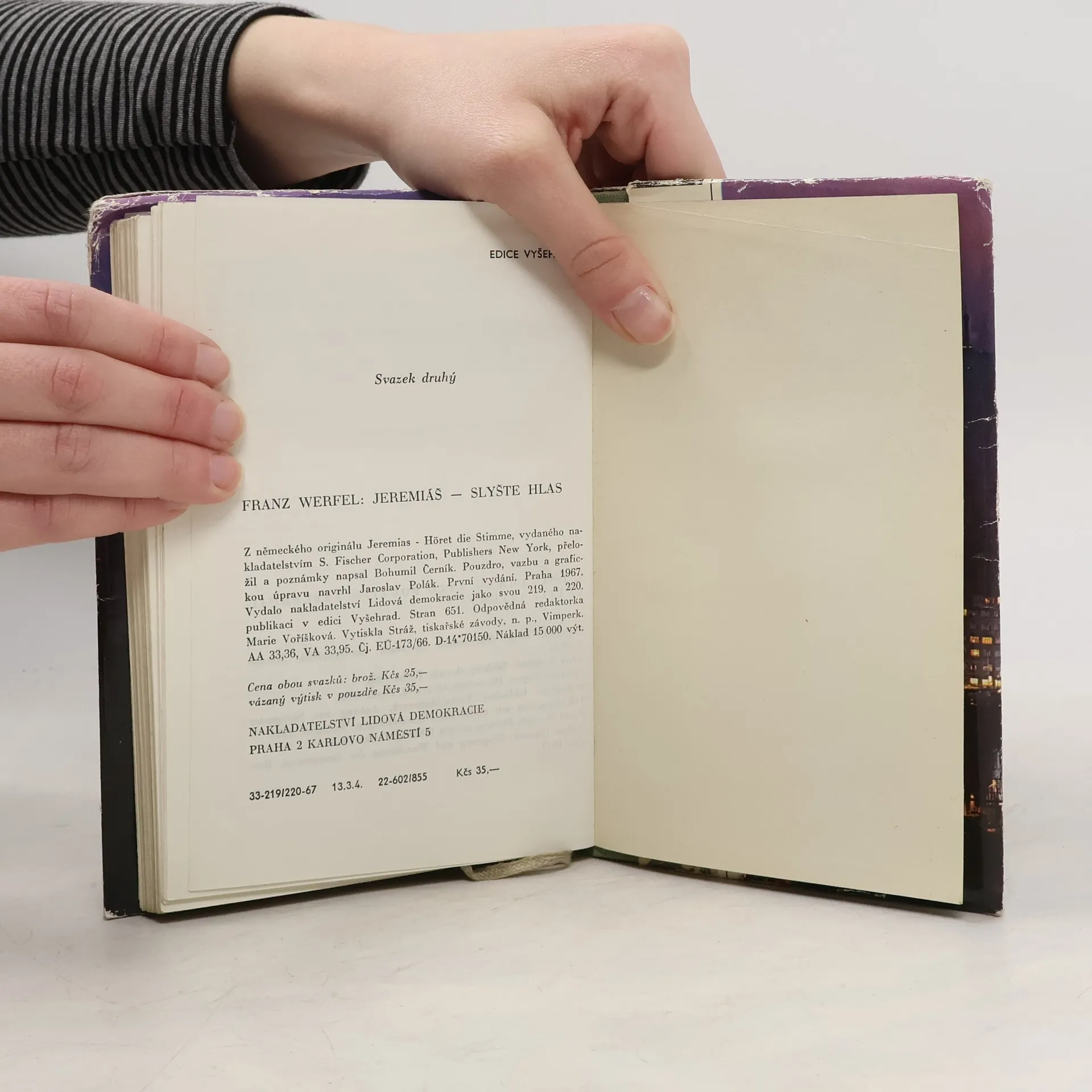 Životní příběh starozákonního proroka Jeremiáše byl a zůstává stále i naléhavým varováním před všemi podobami osobního a společenského násilí. Tak jej chápal i slavný pražský rodák Franz Werfel ve svém románu o těžké úloze této velké biblické postavy, Román vznikal pod vlivemtíživých událostí v Německu roku 1936, a to umocňovalo působnost dávného Jeremiášova poslání. Přestože již v roce 1933 byly v Německu spáleny všechny Werfelovy spisy, neváhal se svým novým dílem postavit sílící totalitní nacistické praxi a vůbec všem, pro něž byla vždy prvořadou jejich vlastní moc. Ve Werfelově pohledu se tak postava babylonského krále Nabukadnezara stávala snadno srovnatelnou s osobou Adolfa Hitlera, utrpení proroka Jeremiáše s utrpením Židů či zničením Jeruzaléma a jeho Chrámu roku 586 př. Kr., apokalyptickým obrazem budoucnosti Evropy ohrožené nacismem. I dnes si vynikající Werfelovo dílo zachovává svou aktuálnost. Vždyť totalitní myšlení nijak nevymizelo ze světového dění, jen jeho metody mění svou tvář. Dílo vyšlo ve dvou svazcích uložených ve společném pouzdře.