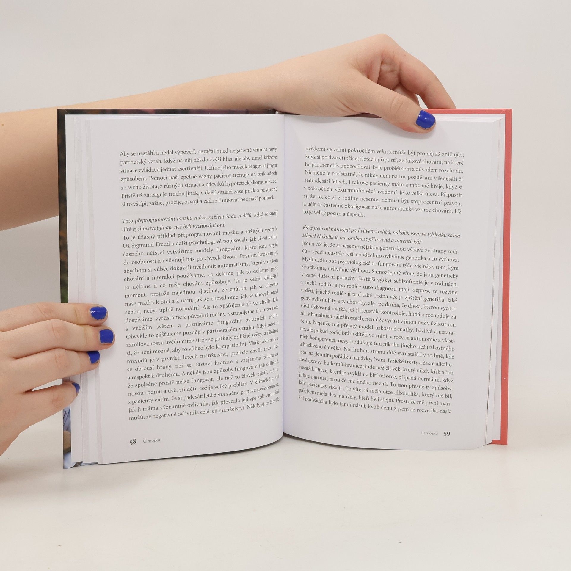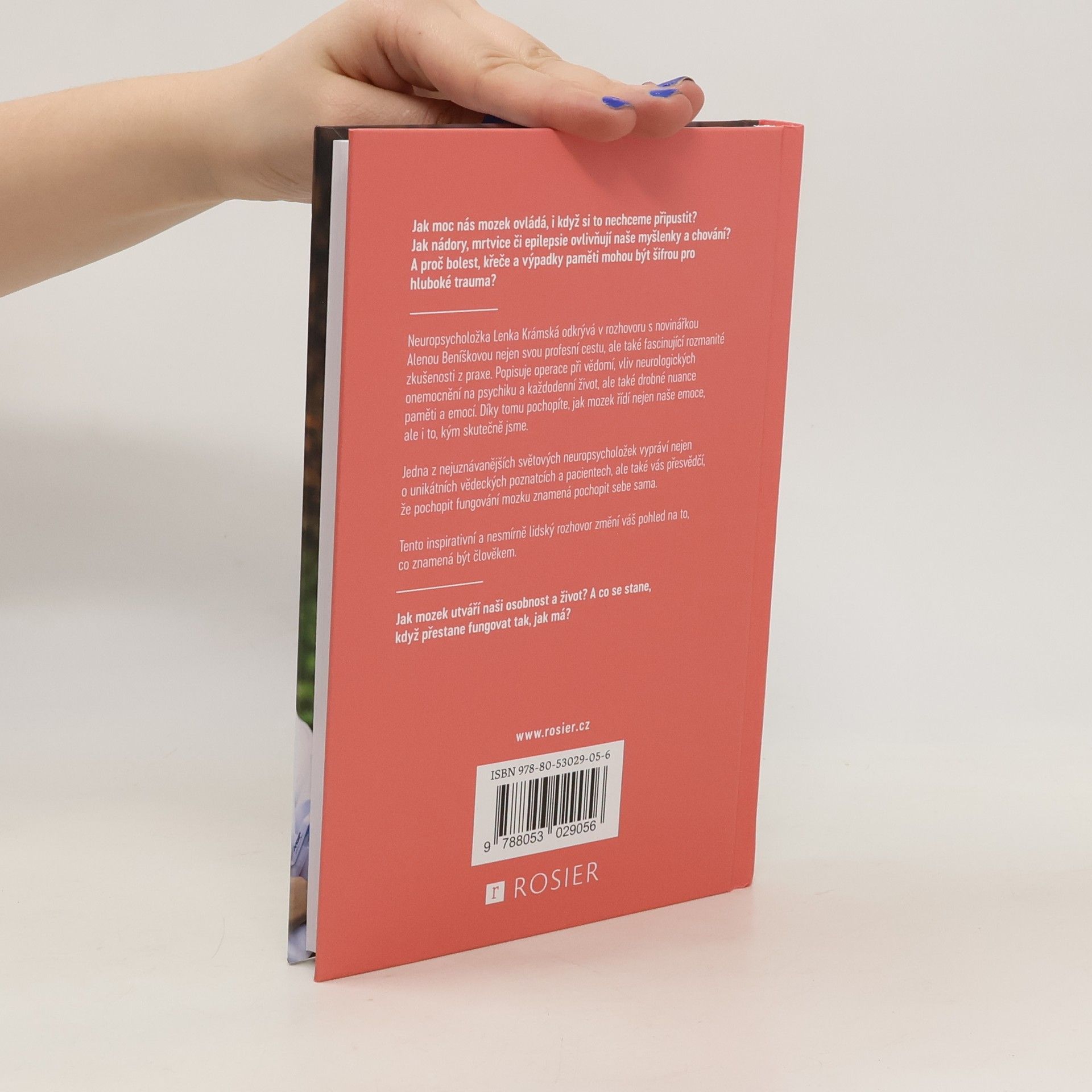 Jak moc nás mozek ovládá, i když si to nechceme připustit? Jak nádory, mrtvice či epilepsie ovlivňují naše myšlenky a chování? A proč bolest, křeče a výpadky paměti mohou být šifrou pro hluboké trauma? Neuropsycholožka Lenka Krámská odkrývá v rozhovoru s novinářkou Alenou Beníškovou nejen svou profesní cestu, ale také fascinující rozmanité zkušenosti z praxe. Popisuje operace při vědomí, vliv neurologických onemocnění na psychiku a každodenní život, ale také drobné nuance paměti a emocí. Díky tomu pochopíte, jak mozek řídí nejen naše emoce, ale i to, kým skutečně jsme. Jedna z nejuznávanějších světových neuropsycholožek vypráví nejen o unikátních vědeckých poznatcích a pacientech, ale také vás přesvědčí, že pochopit fungování mozku znamená pochopit sebe sama. Tento inspirativní a nesmírně lidský rozhovor změní váš pohled na to, co znamená být člověkem. Jak mozek utváří naši osobnost a život? A co se stane, když přestane fungovat tak, jak má? Alena Beníšková vystudovala italský jazyk na Filozofické fakultě Jihočeské univerzity a mediální studia na Fakultě sociálních věd Univerzity Karlovy. Během bakalářského studia absolvovala pracovní stáž v italské Veroně, která ji nasměrovala k psaní. Několik let psala pro zpravodajský portál iDNES.cz, následně její kroky vedly do PR agentury 2media, a poté znovu do médií – konkrétně do Deníku, kde od roku 2019 píše články a rozhovory zejména o zdraví. Absolvovala kurz dramatického psaní v Národním divadle. Během rodičovské dovolené napsala divadelní pohádku Kouzla noci svatojánské, kterou uvádí Divadelní soubor Kukr ve Středočeském kraji. Aktuálně působí jako externí vyučující na Filozofické fakultě Jihočeské univerzity. Ve volném čase se věnuje italské literatuře a historii zaniklých obcí Vitorazska na česko-rakouských hranicích, odkud pocházejí její předci. Prof. PhDr. Mgr. Lenka Krámská, Ph.D., je klinická psycholožka a psychoterapeutka, specialistka na neuropsychologii s více než dvacetiletou praxí. Zaměřuje se na diagnostiku a psychoterapii kognitivních a emočních poruch, které se vyskytují u pacientů s rozmanitými neurologickými onemocněními. Jde například o epilepsii, cévní mozkové příhody, nádory centrální nervové soustavy, neurodegenerativní onemocnění a psychosomatické či funkční neurologické poruchy. Výrazně přispěla k rozvoji neuropsychologie v České republice, a to zavedením nových neuropsychologických metod do klinické praxe a výzkumu a přípravou akreditace prvního certifikovaného kurzu Klinické neuropsychologie dospělých.